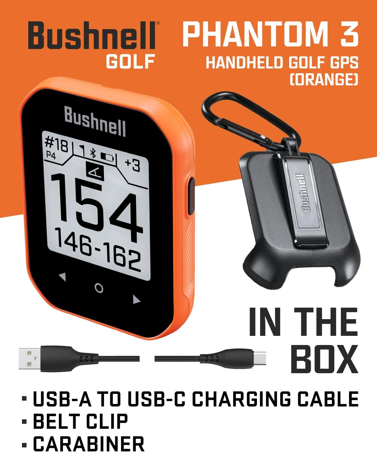 Bushnell Phantom 3 Features: Larger display BITE magnetic mount GreenView Auto Course Recognition Auto Hole Advance Shot Distance Calculator Included Clip & Carabiner Slope adjustment