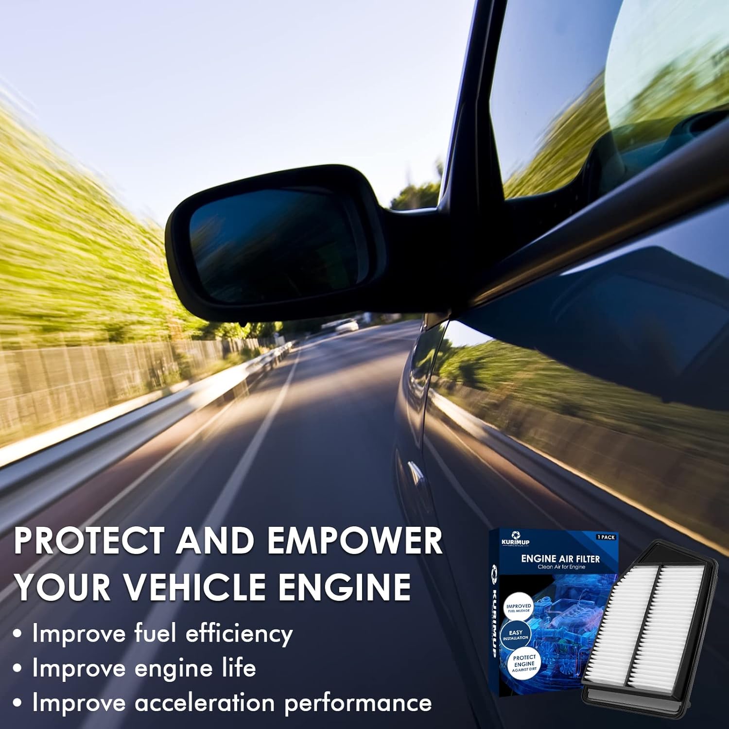 [99% Air Purification] KURIMUP engine air filter is made of high-density, high-capture ability, and high-breathable fabric material. It reliably filters out 99% of impurities in air and provides larger volume clean airflow for engine, then increases efficiency of fuel combustion, mileage per gallon and optimizes engine power.
