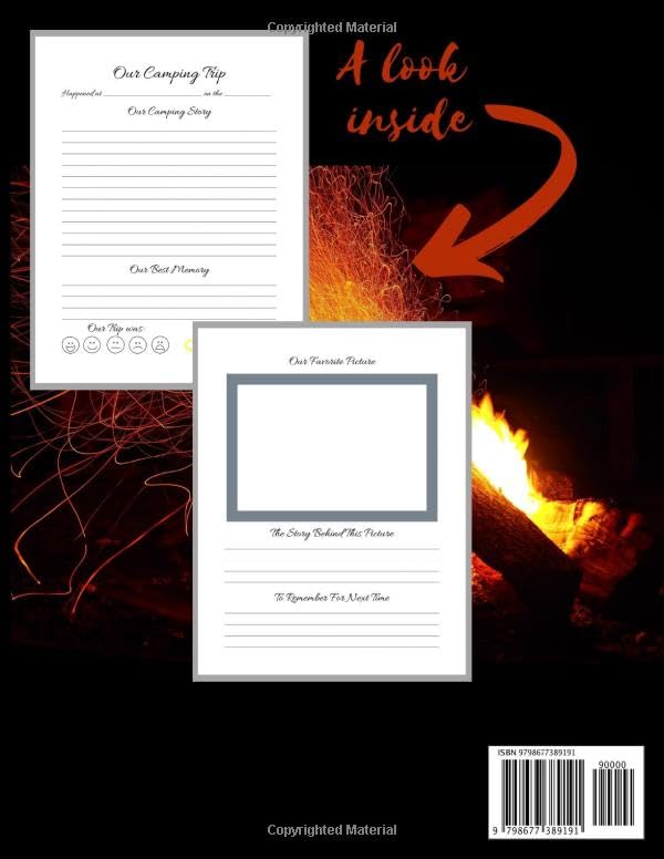 post a pictures of your favorite memoriesspace to record the story behind the picturehaving space to write down your adventuremarking the weather and the enjoyment of the campsitethe best memory of the tripand a space to note what to remember for next time