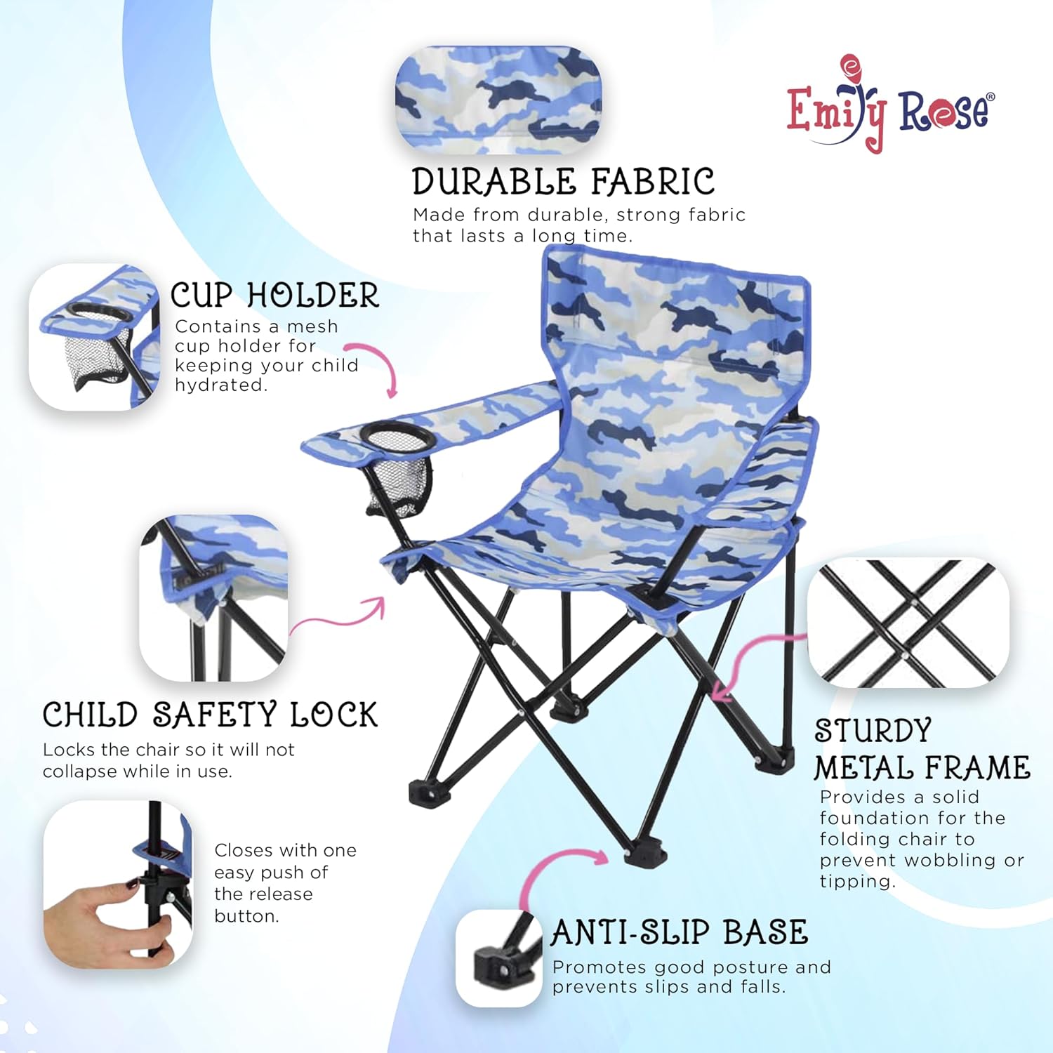⭐ PERFECT FOR KIDS 2–7: Designed for toddlers and kids, boys & girls, this lightweight, comfortable folding chair with colorful blue camo is ideal for beach days, camping trips, travel, picnics, or backyard fun.