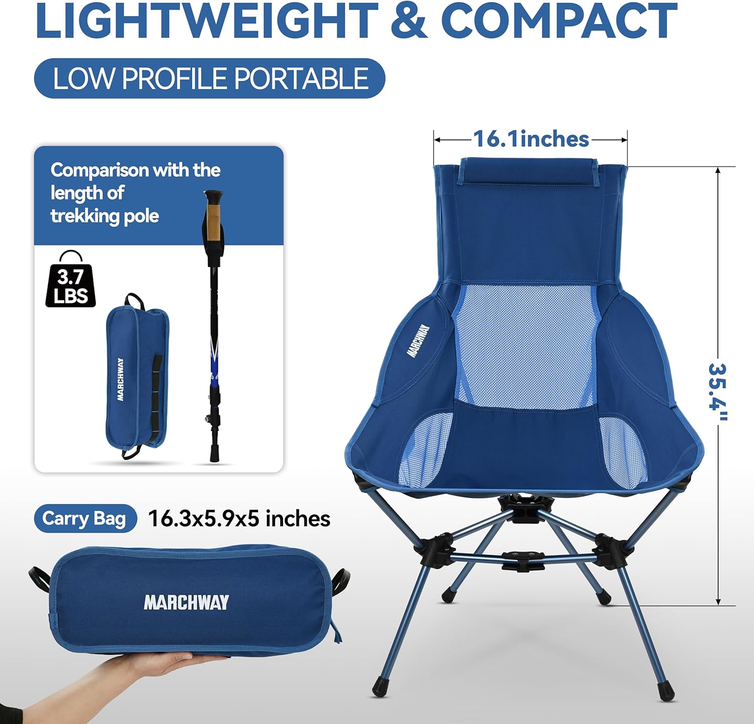 Lightweight and Compact: It weighs only 3.7 pounds and you can easily pick it up with one hand. It folds up into a compact carrying bag that is about 1/3 the size of a traditional camp chair, you can put it in suitcase and take it anywhere. The handy portable chair offers a good balance of comfort and convenience, ideal for camper, hiker, fisher, hunter, cyclist, kayaker, off roader.