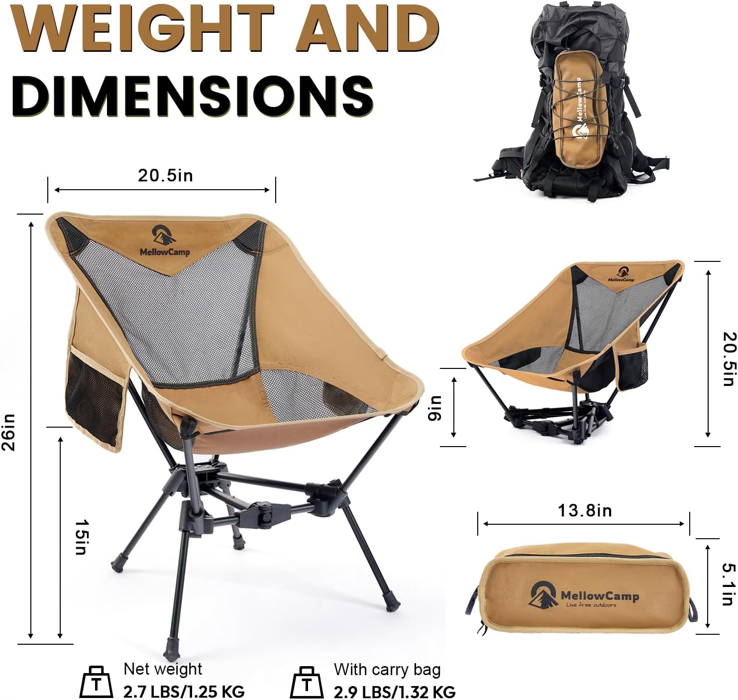 Some Aesthetics : MellowCamp chair’s mountain-inspired inverted top & charcoal mesh blend industrial precision with natural harmony. Ergo contours cradle like valleys, breathable mesh channels forest breezes. Achieves glamping equilibrium where engineering meets wilderness poetry through refined materiality.