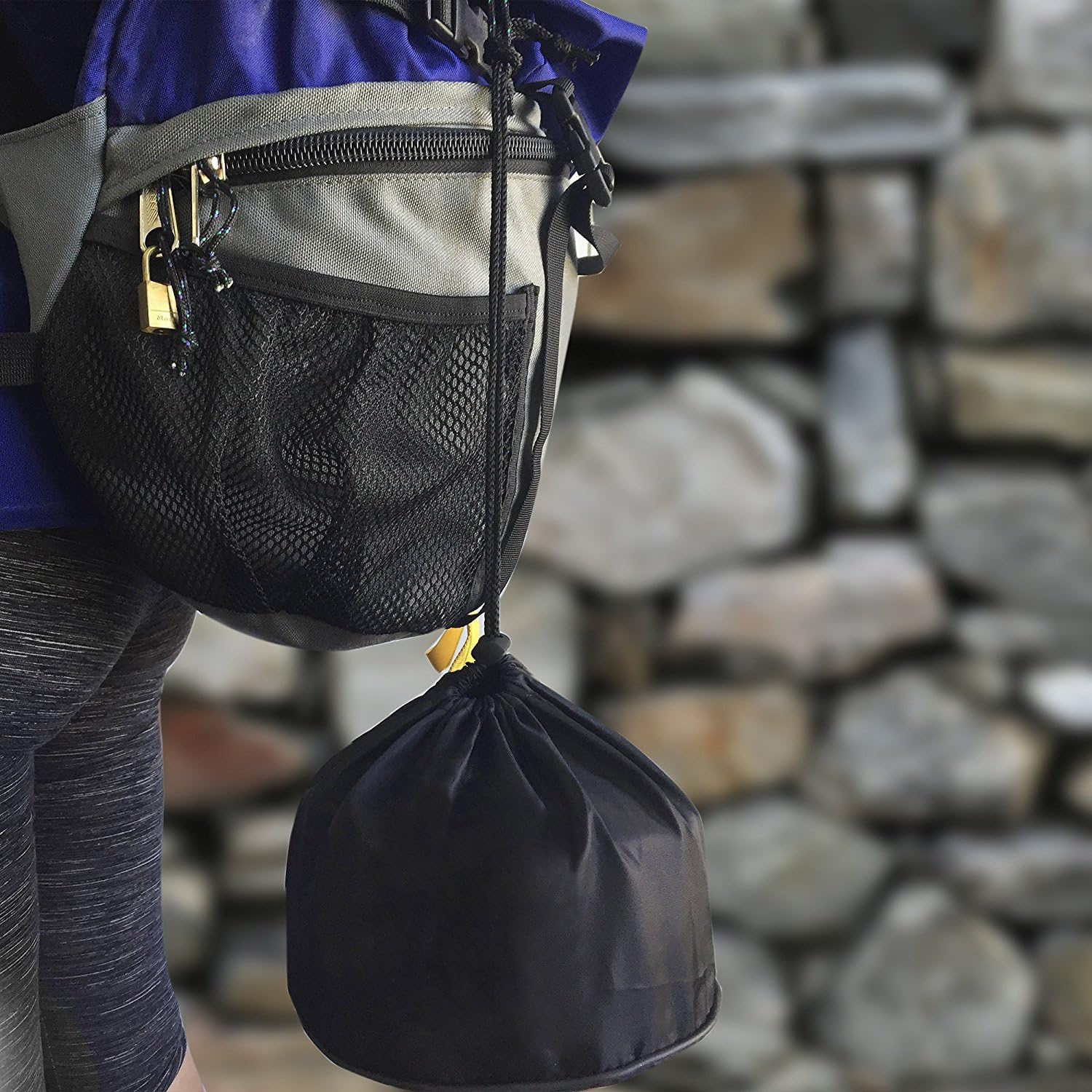 The compact, stackable design fits neatly into a mesh carry bag, making it ultra-portable and perfect for backpackers, campers, hikers, or emergency kits.