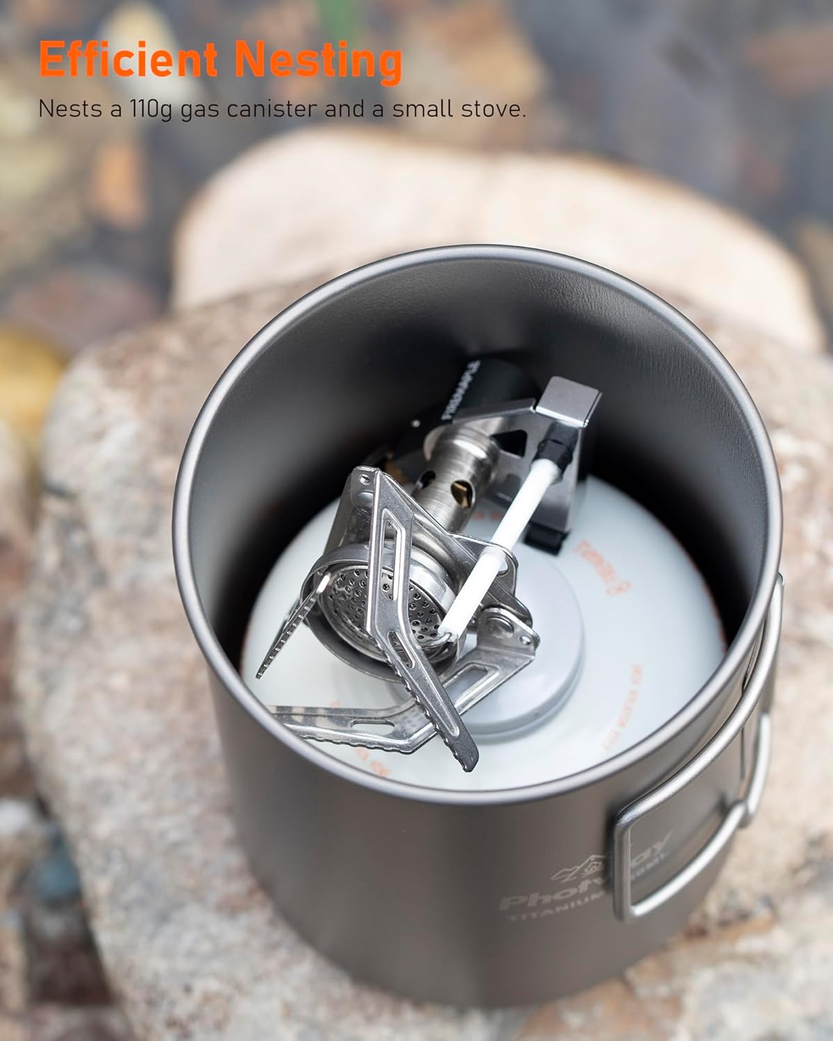 Efficient Nesting Storage — fits a Photway 450ml titanium cup or a small fuel canister inside, streamlining carry and saving precious pack space for fast-packing and backcountry trips.