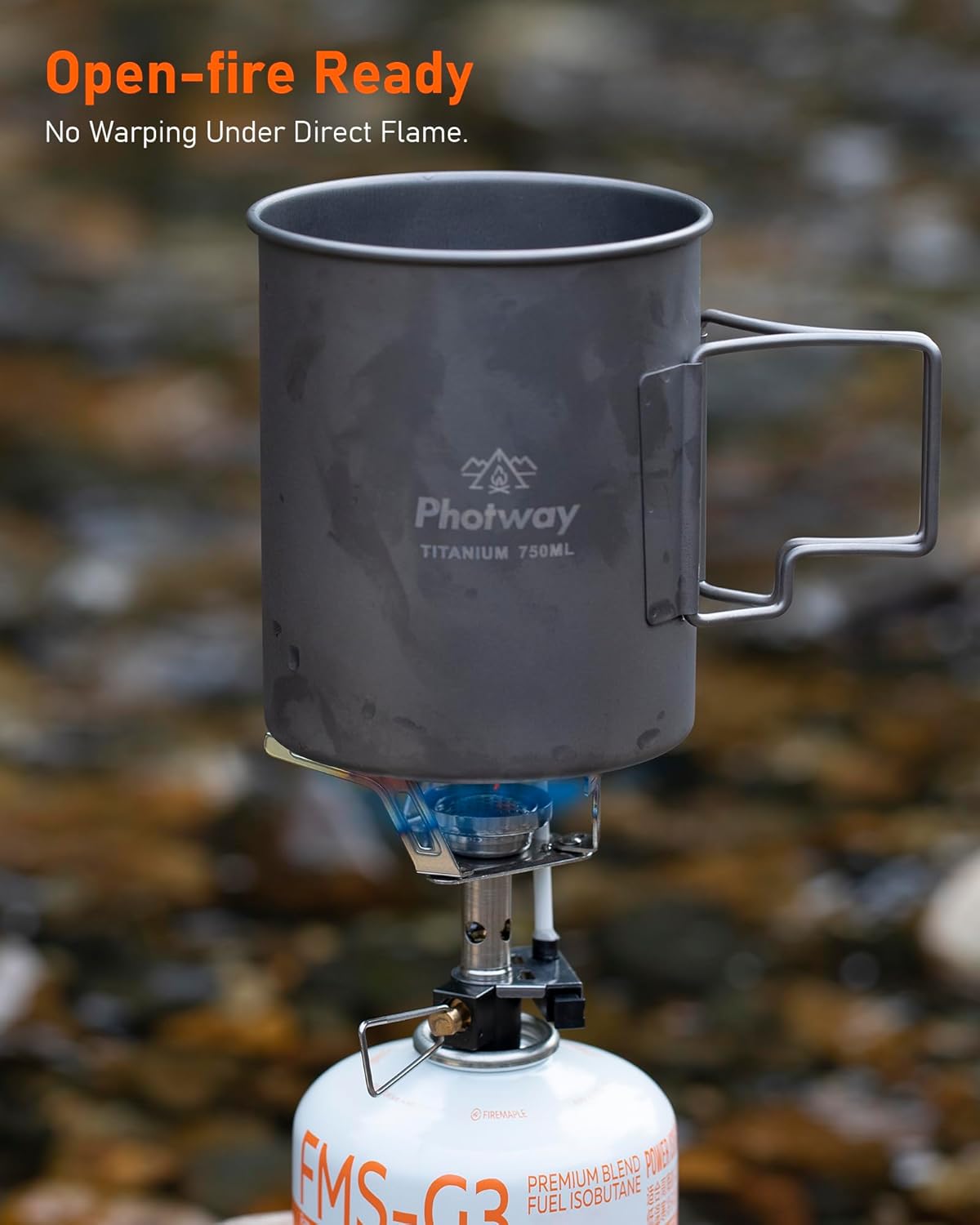 Pure Titanium, Clean Taste, No Coatings — preserves the natural flavor of food and drinks with no metallic taste. Handles direct flame and camp stoves without warping, corrosion-resistant, coating-free, and built for everyday trail cooking.