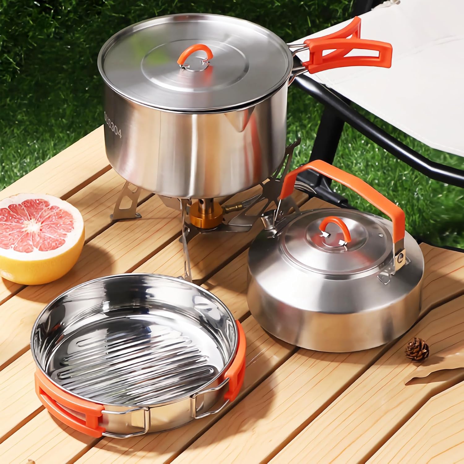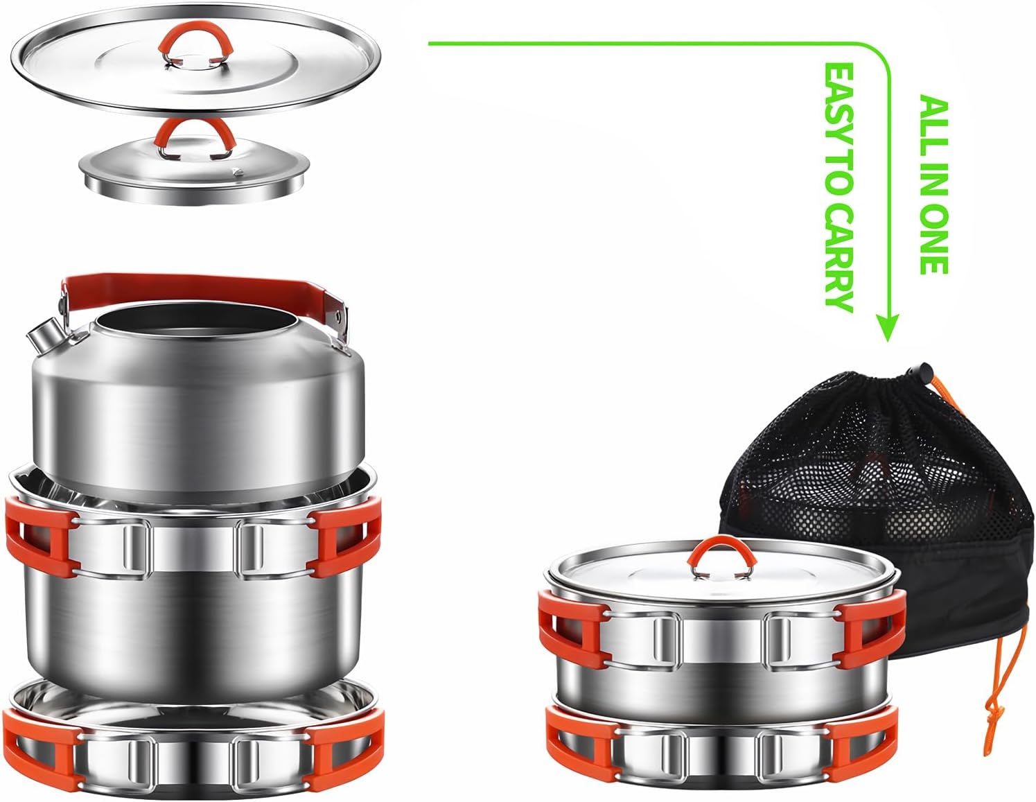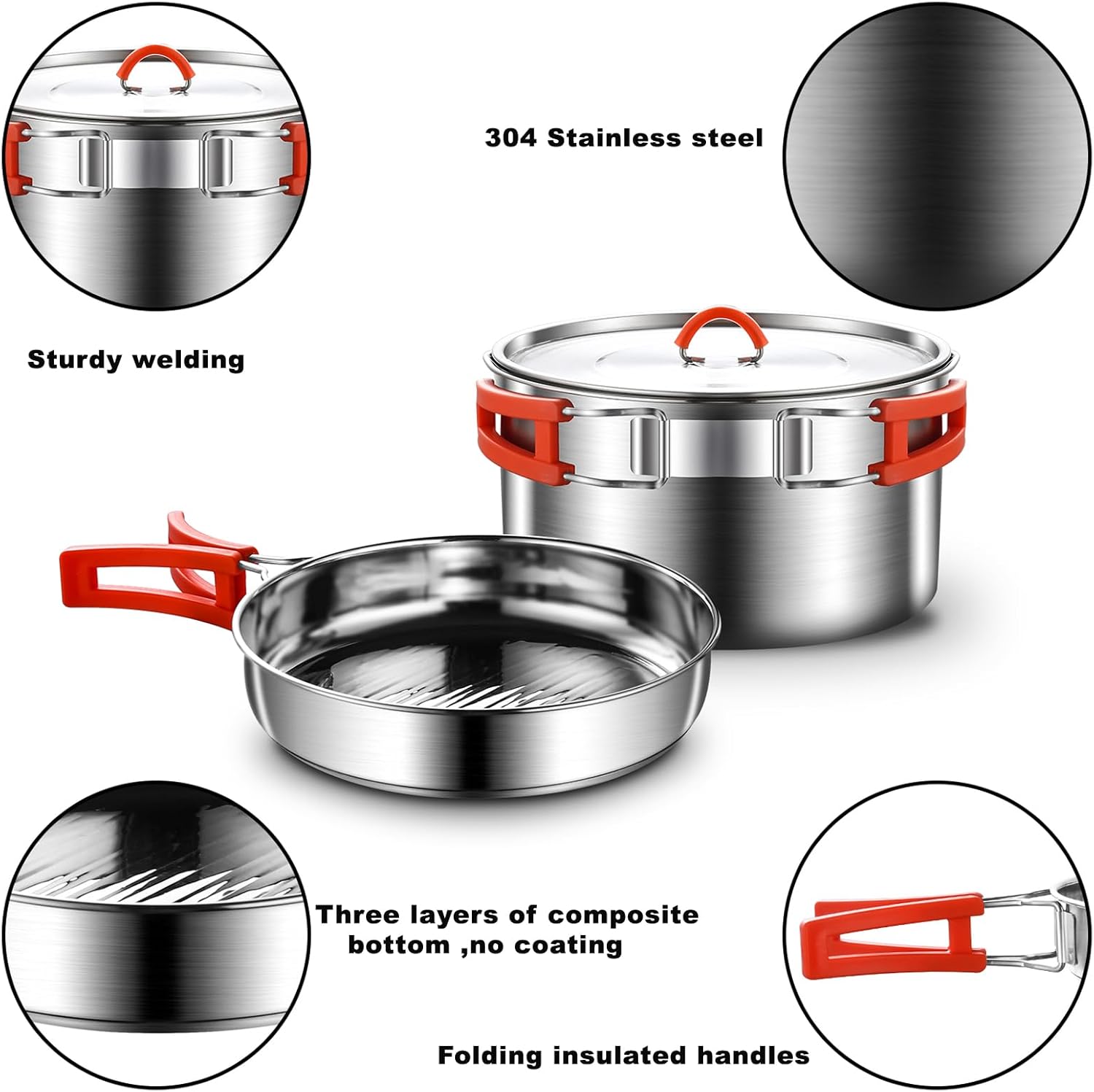 Camping Cookware Set – 304 Stainless Steel Camping Gear Perfect for Camping Cooking, Picnics, Hiking & Backpacking