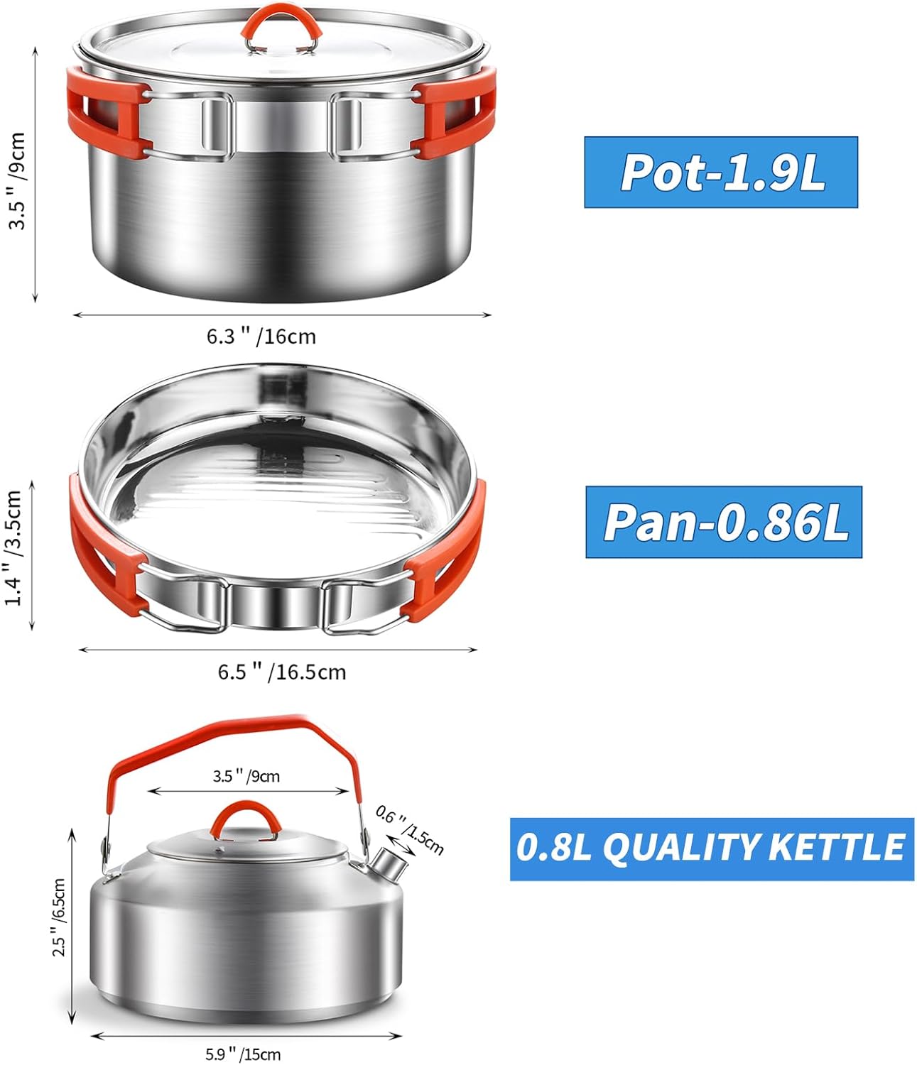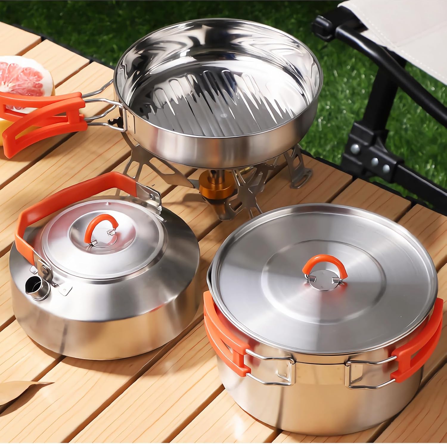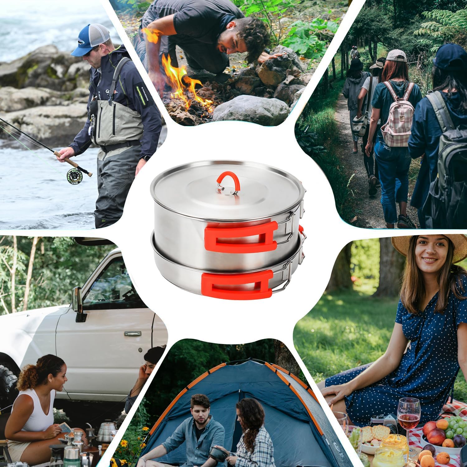 Camping Cookware Set – 304 Stainless Steel Camping Gear Perfect for Camping Cooking, Picnics, Hiking & Backpacking