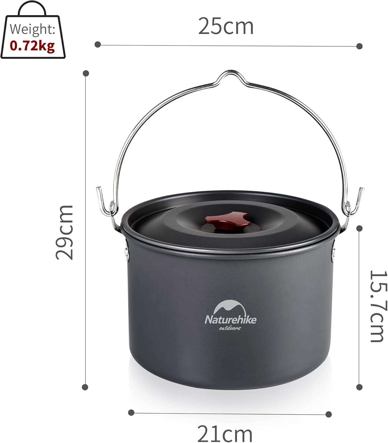 1 mm thick aluminum plate: This is an outdoor hanging pot that truly achieves a balance between light weight and durability.The mainstream market chooses 0.0315″ aluminum sheet, and Naturehike chooses 0.0394″ aluminum sheet, which is 25% thicker than the normal thickness and can be used for a longer time.