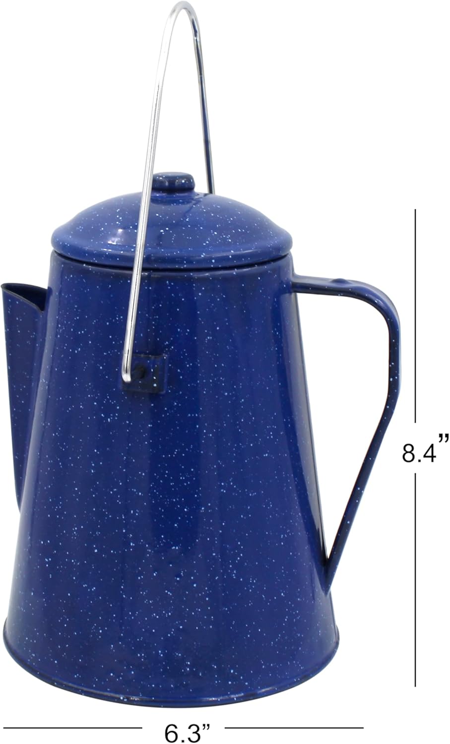 Complete Cookware Set: This enamelware includes everything you need for a complete and user-friendly outdoor cooking experience, with 6 individual pieces among which frypan, kettle and percolator!