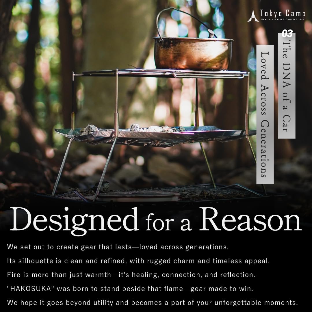 The Hakosuka, a legendary Japanese car from the late 1960s and early ’70s, became an icon for its bold, boxy design and motorsport success. Just like this timeless classic, the TokyoCamp “HAKOSUKA” Fire Pit embodies a philosophy of stripping away excess—delivering pure function and enduring beauty that campers can pass down for generations.
