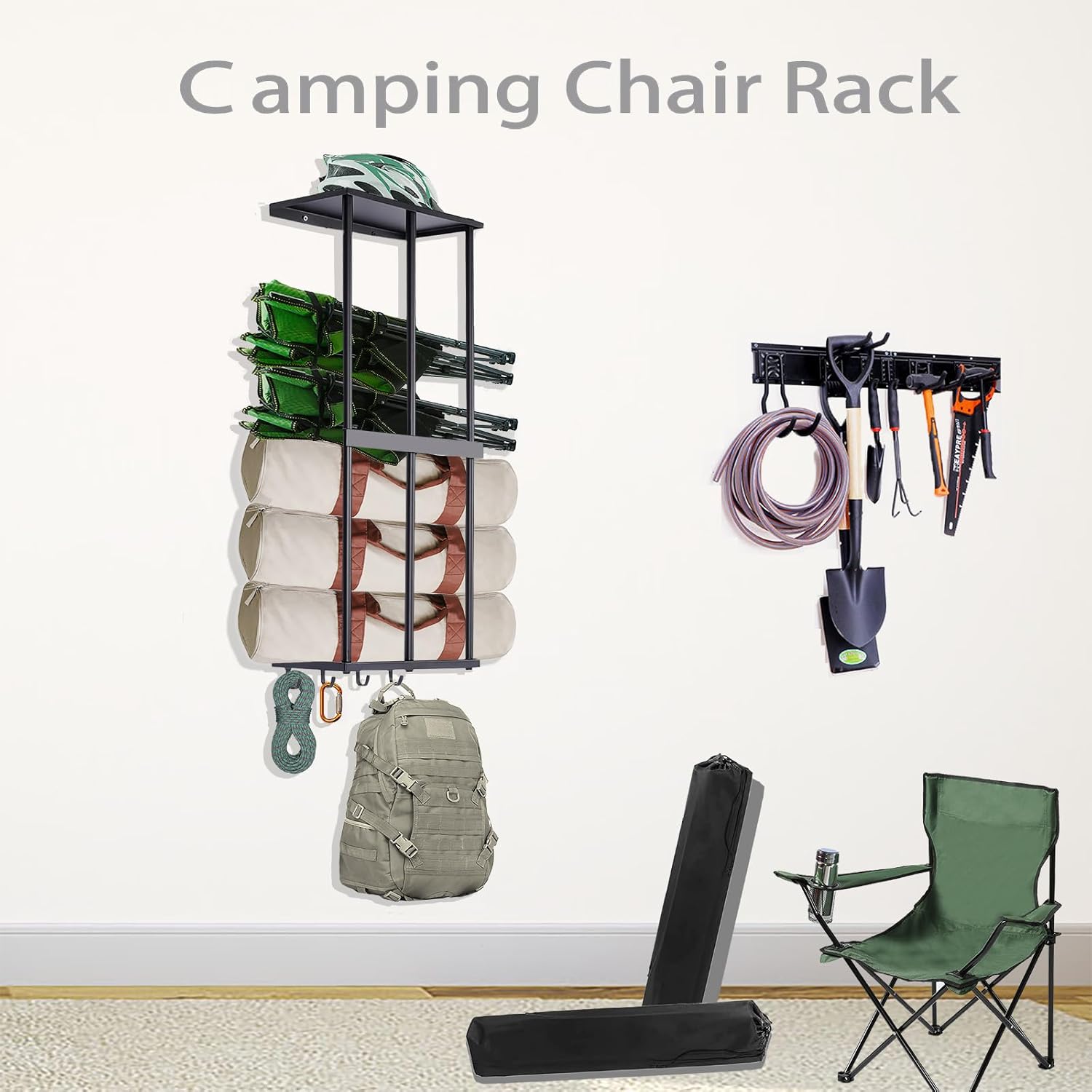 Exceptional Customer Service: We value your satisfaction and strive to provide the best possible experience. Our camping chair storage rack comes with a 3-year warranty, ensuring that you can rely on its quality and performance. If you have any questions or concerns, our dedicated customer service team is available to assist you. Simply reach out to us, and we will promptly solve any issues within 10 hours. Use our camping chair garage wall shelving and enjoy a happier and more organized life.