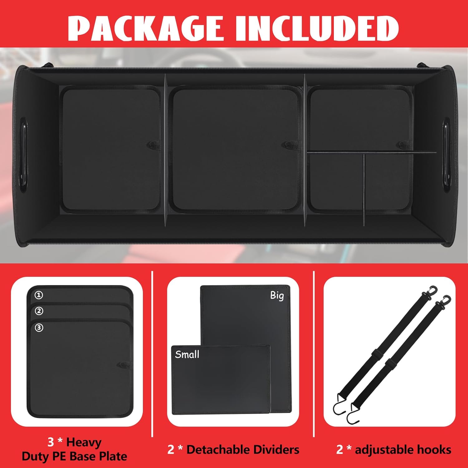 ✔️【Heavy-Duty Structure Material】Our car storage trunk organizer is made from premium Oxford polyester, ensuring durability that outlasts standard fabrics. It resists dirt, wear, and is easy to clean. Reinforced with 5 mm thick side walls and partitions, this organizer offers exceptional stability and load capacity. With careful stitching and special edging, it’s built to endure everyday use, keeping your car organized for years!