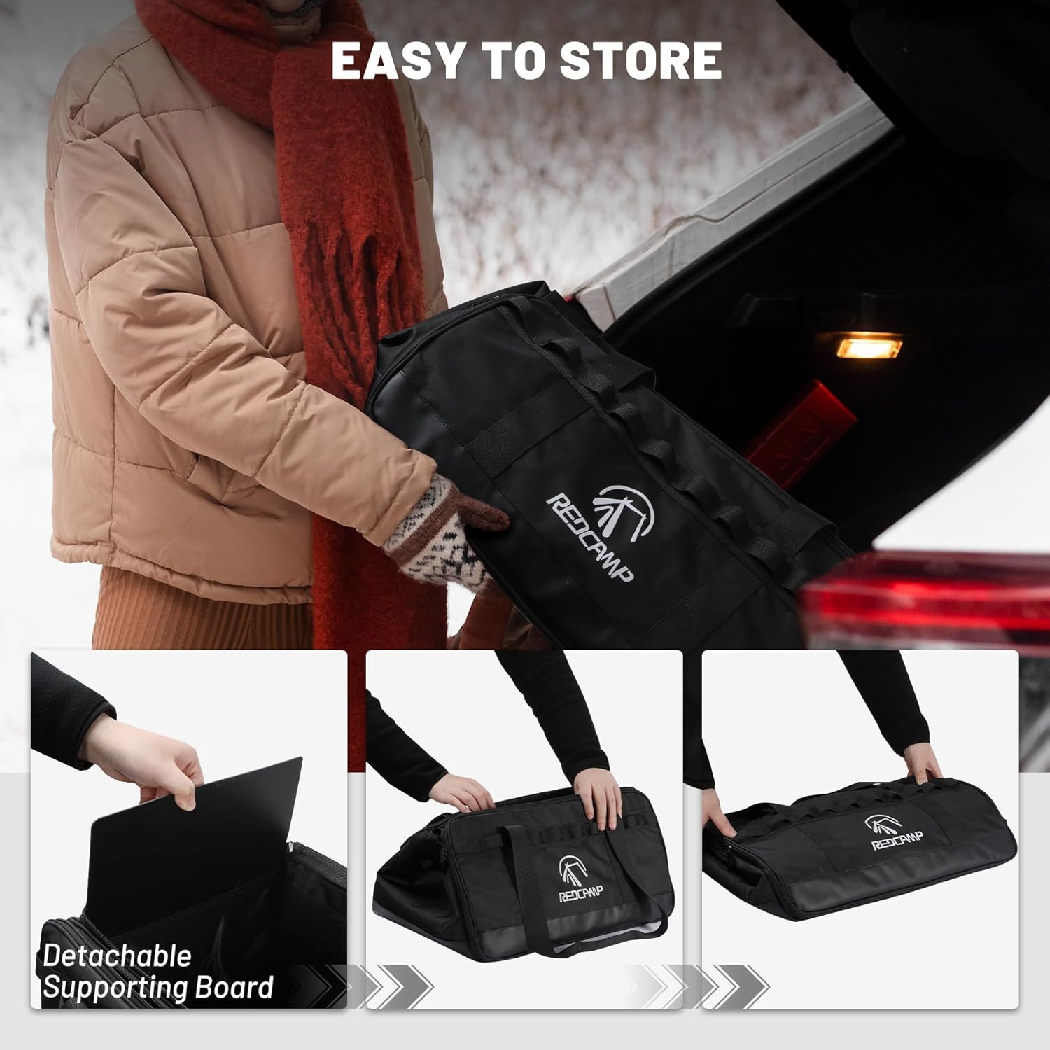 Spacious Storage Capacity: Featuring large dimensions of 19x12x10” and a generous 35L capacity, this camping storage bag can easily accommodate food, tools, camping gear, cooking utensils, and books. Perfect for all your outdoor adventures!