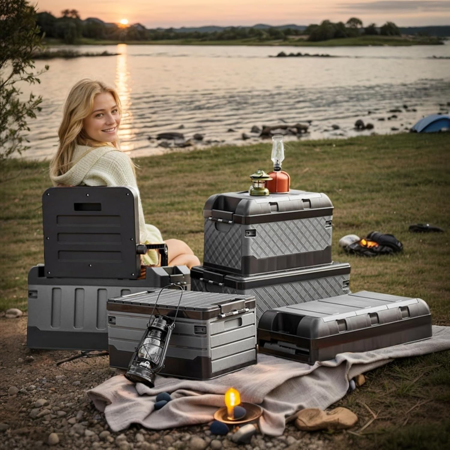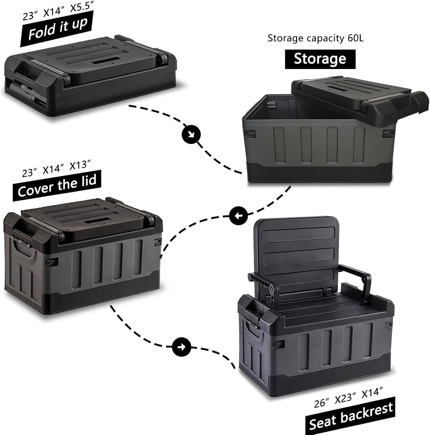 WIDE APPLICABILITY : Can be used as trunk car organizer,fishing tackle boxes,camping storage,camping chairs,hunting gear,totes for storage,tackle box,truck bed storage box,60L large storage bins can accommodate a large number of items.