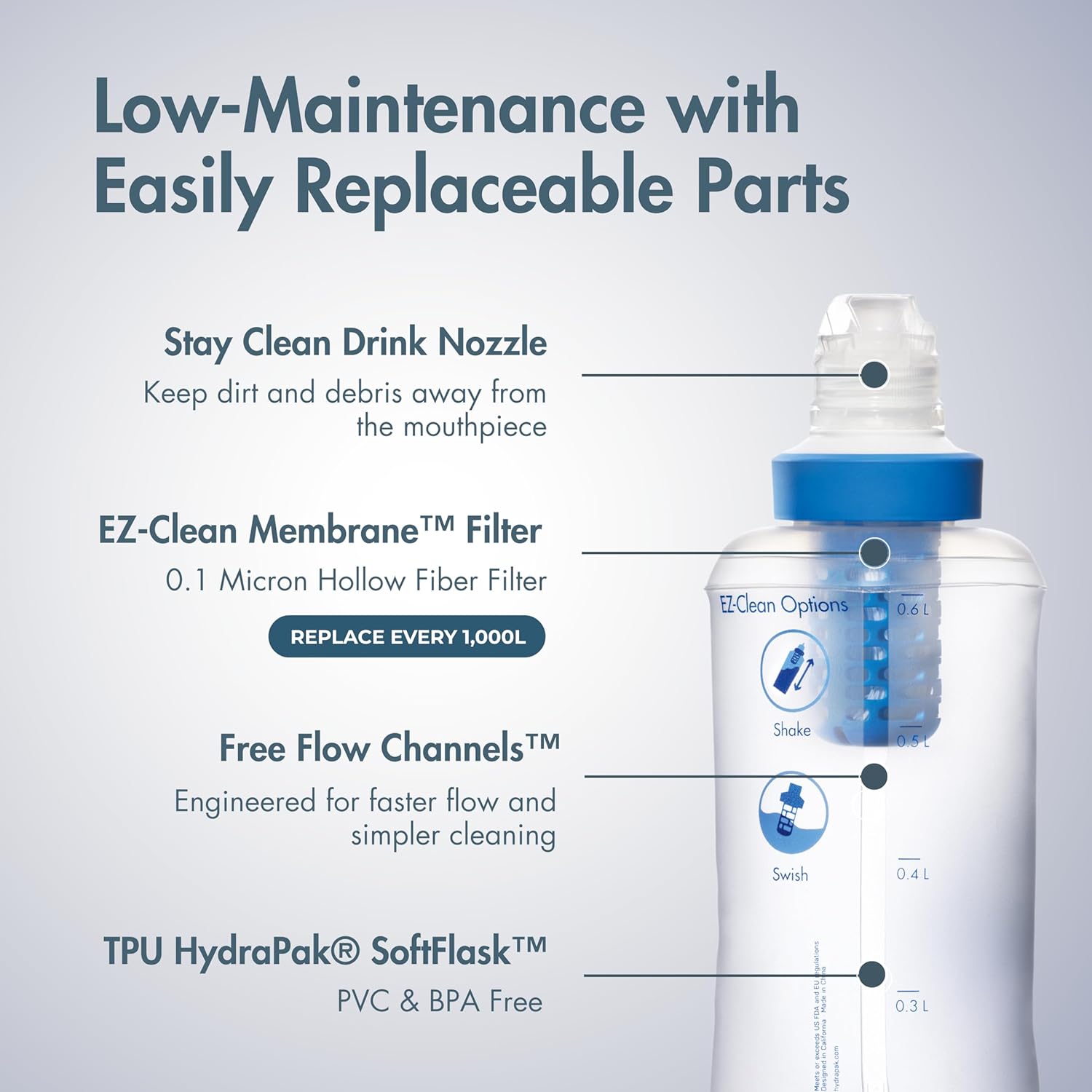 Efficient and Durable: Filters up to 1,000 liters (up to 2 liters/min) of contaminated water without chemicals, featuring free flow channels for quick hydration.