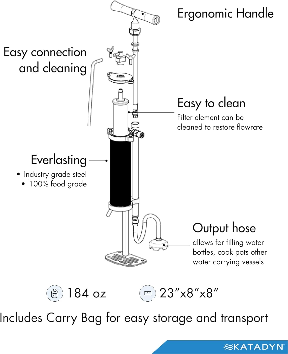Highest flow rate of any portable filter at one gallon per minute; comes with pre-filter and convenient carrying bag