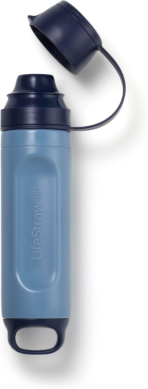LifeStraw Peak Series Solo Water Filter is an ultra-lightweight (only 1.7oz), compact (just 5.1”), portable water filtration device that removes bacteria, parasites, microplastics, silt, sand, and cloudiness from drinking water. The standard 28mm threading on the filter allows it to be screwed onto most common water bottles. The one-handed flip cap makes on-the-go filtration super easy and fast: fill up a 1L bottle in just 20 seconds. Great for hiking, backpacking, camping, emergency situations, travel or on-the-go needs. At less than 2 ounces, and 2,000L of clean drinking water, no backpack, pocket, emergency bag, or glove compartment should be without one.