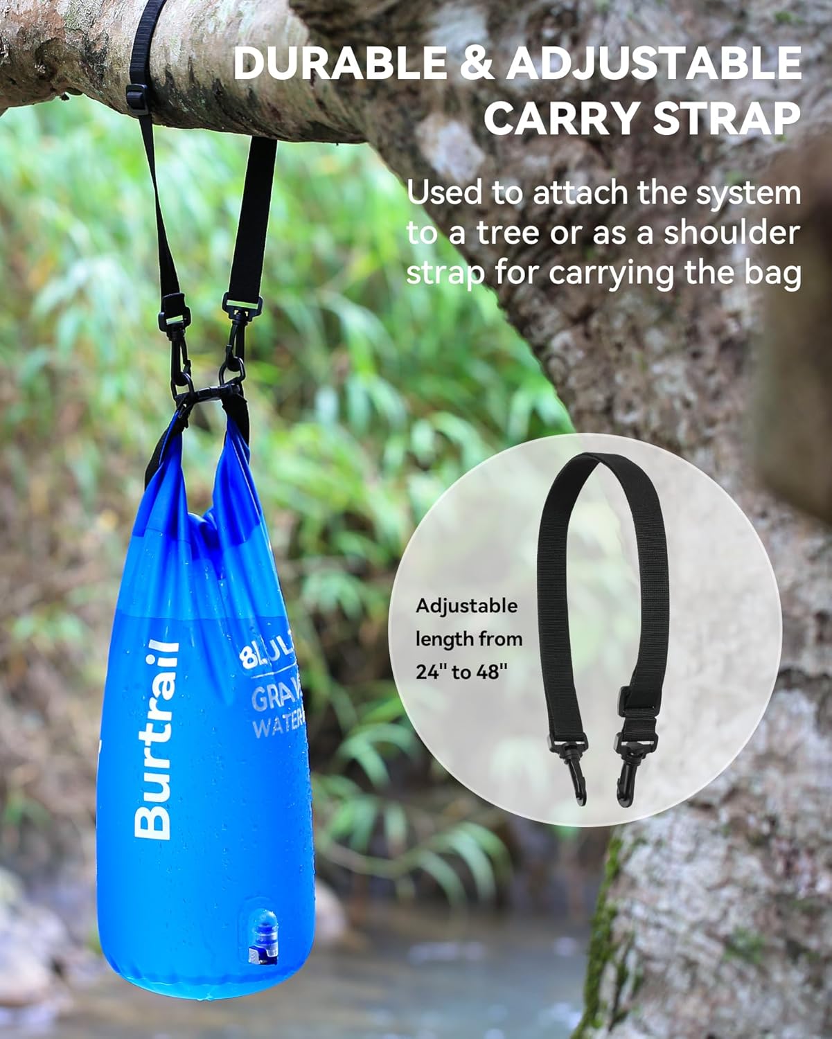High-Quality Materials: This 2 Gal gravity water bag is made of Food-Grade TPU materials,BPA-free,safe and ultra-durable material to ensure safe and water leakage prevention all the time