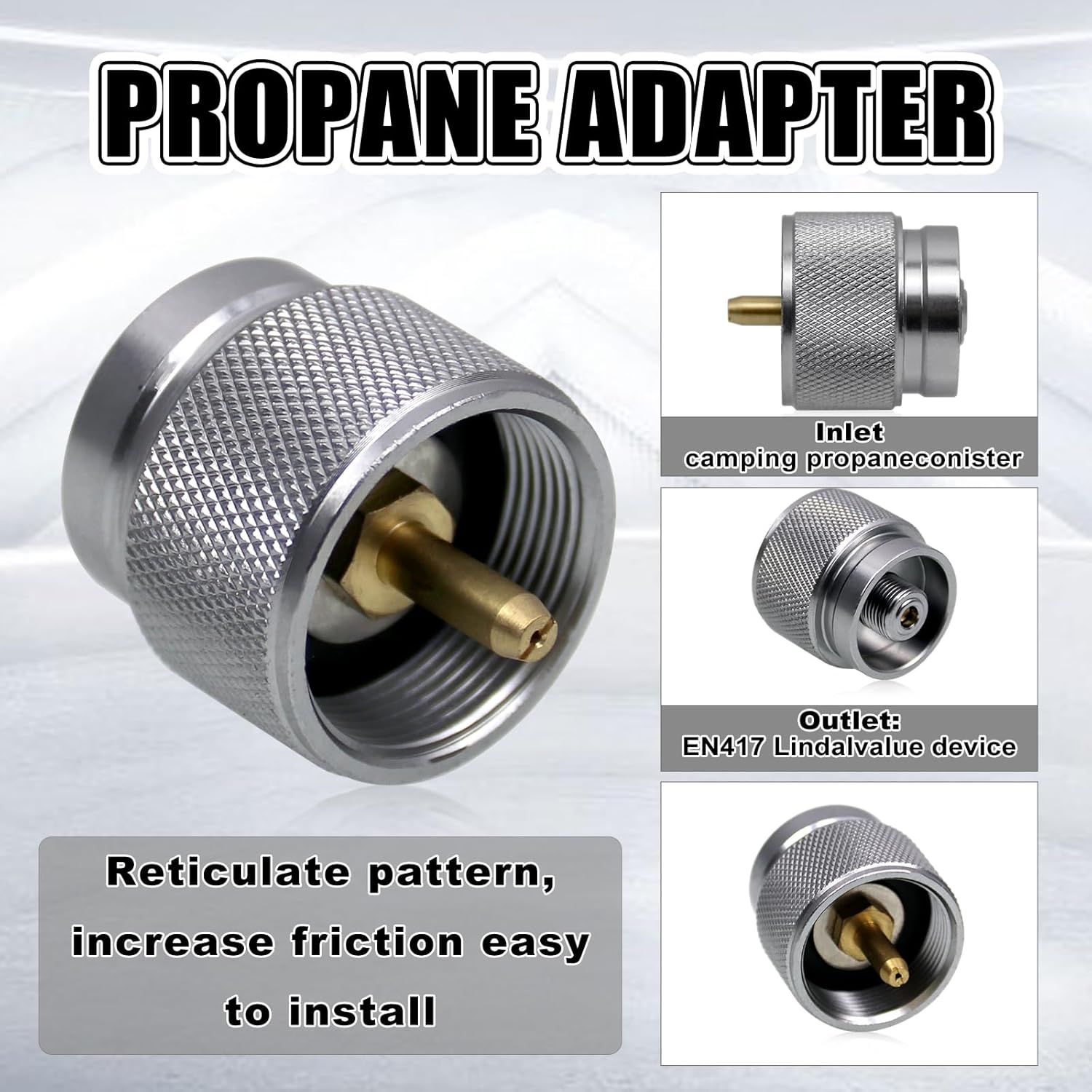 Versatile Compatibility: Our propane/isobutane/butane refill adapters easily connect with 1LB propane canisters, butane canisters, and EN417 Lindal valve canisters. Adapt your gas tanks effortlessly for mutual inflation between different types.