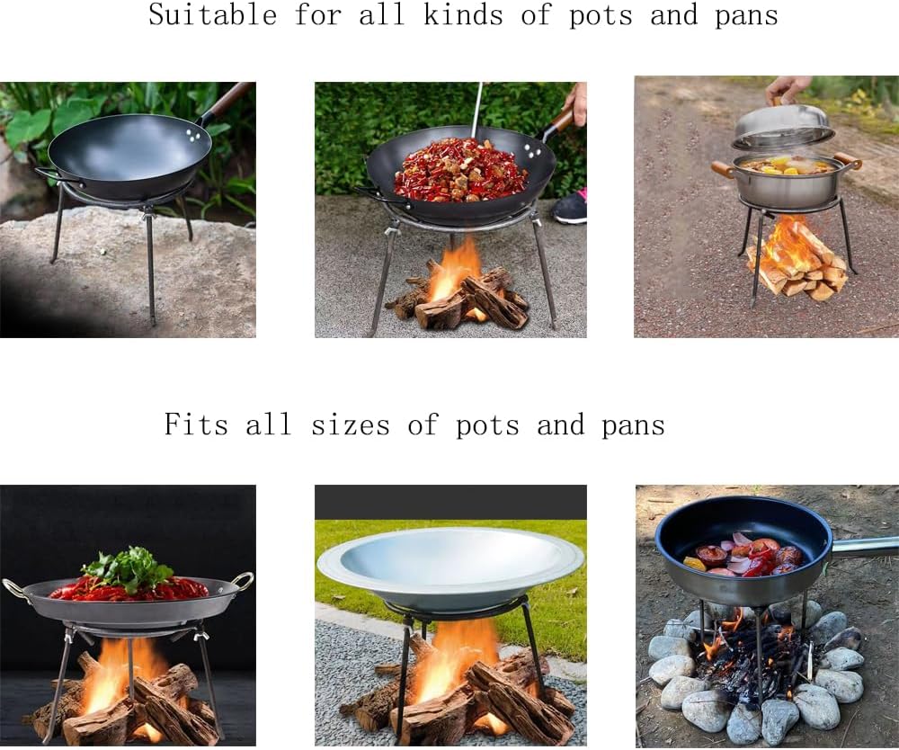 Multi-cookware compatibility portable campfire the versatile design of the tripod is suitable for various heat sources and cookware types