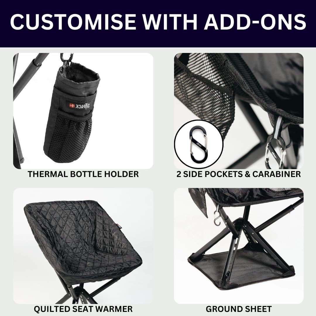 HANDS-FREE CONVENIENCE: The Sitpack Chair Bag makes it simple to carry your foldable camp chairs for adults with an adjustable strap and mesh side pocket, perfect for on-the-go convenience.