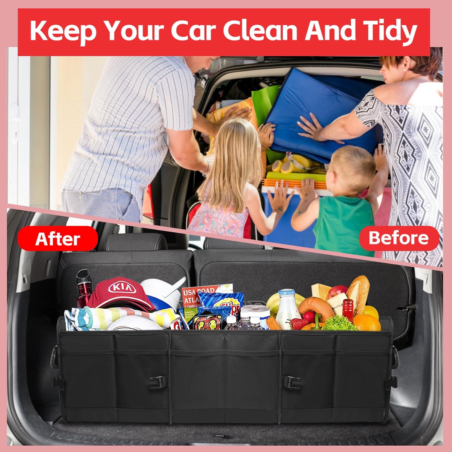✔️【Heavy-Duty Structure Material】Our car storage trunk organizer is made from premium Oxford polyester, ensuring durability that outlasts standard fabrics. It resists dirt, wear, and is easy to clean. Reinforced with 5 mm thick side walls and partitions, this organizer offers exceptional stability and load capacity. With careful stitching and special edging, it’s built to endure everyday use, keeping your car organized for years!