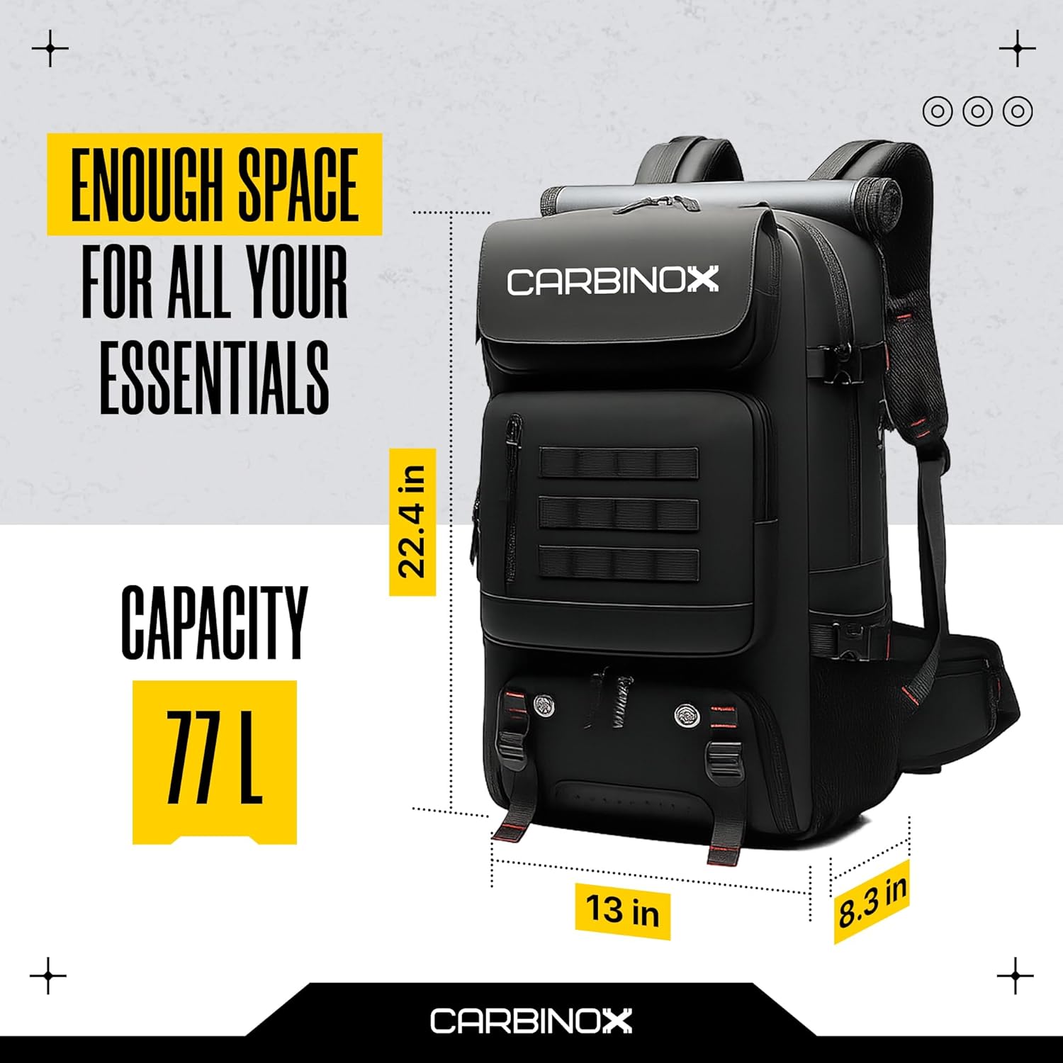 ENOUGH SPACE FOR ALL YOUR ESSENTIALS: Capacity up to 77L, allowing you to carry your everyday essentials in a comfortable and organized way.