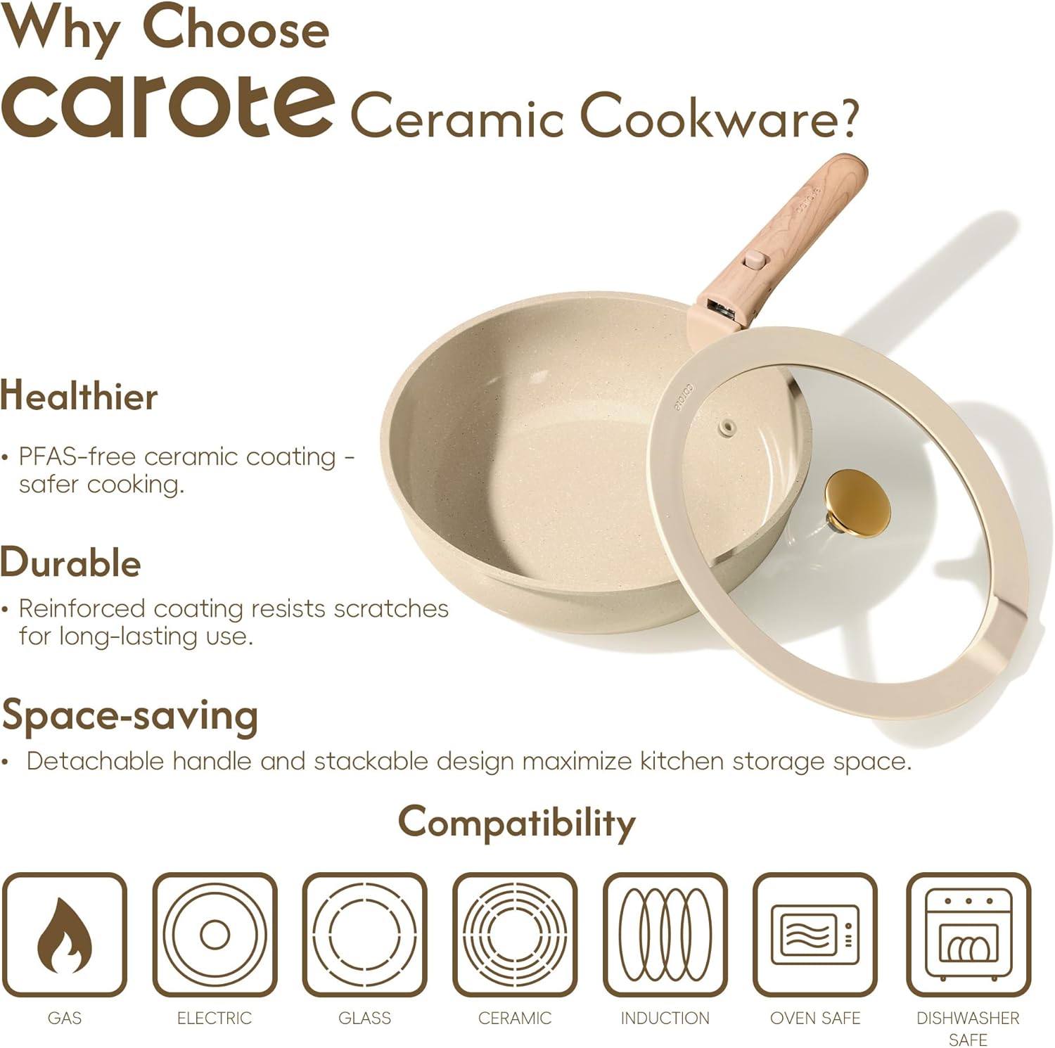 Cook Healthier:Our cookware sets are free of PFOA, PFOS, and the other harmful chemicals. You can enjoy your cooking on carote cookware safely & easily