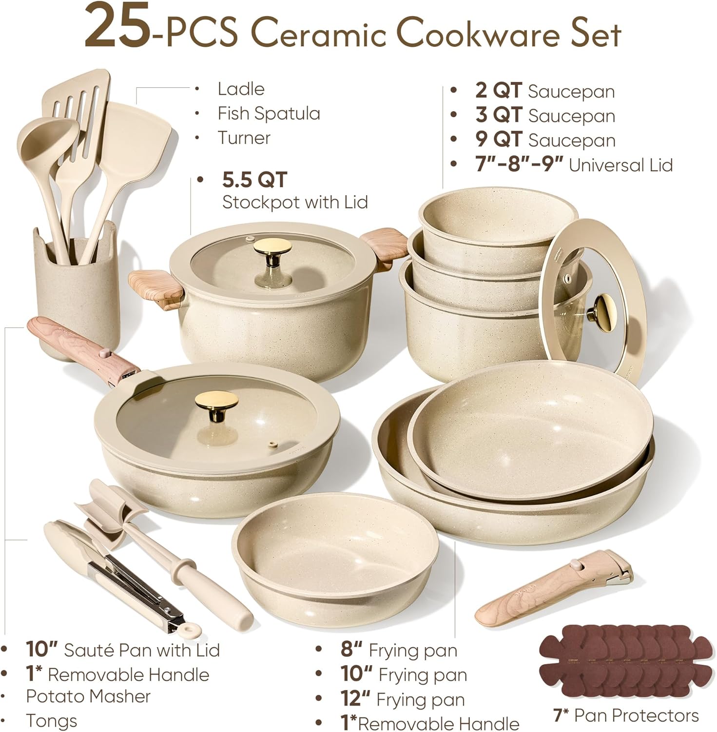 Lasting performance: The reinforced die-cast aluminum construction of this kitchen pots and pans set make it resistant to wear and tear, allowing it to withstand frequent usage without compromising its performance