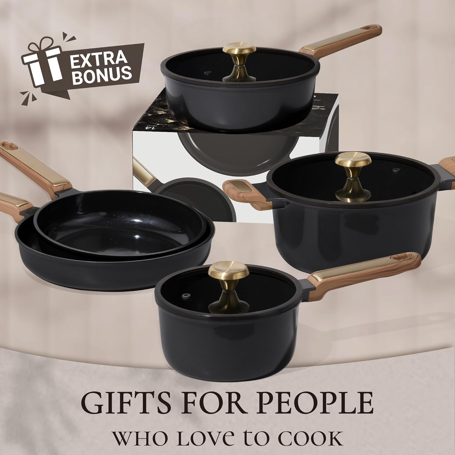 COMPATIBLE WITH ALL STOVETOPS: Built for versatility, this non-toxic cookware set is compatible with induction, gas, and electric ranges.