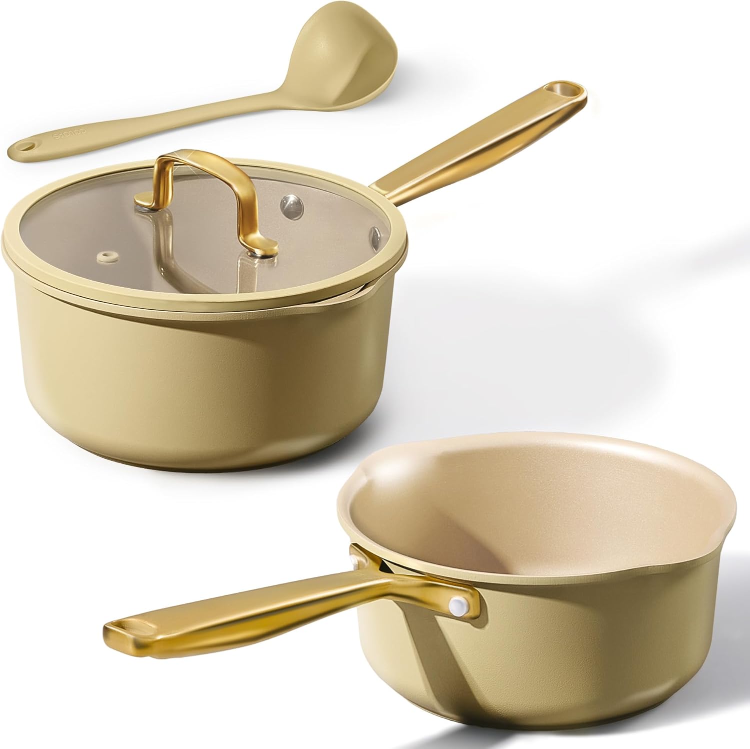Non-Stick and Easy Care: CAROTE 2.1qt & 2.8qt saucepan set features a non-toxic, nonstick coating, which ensures excellent food release for healthier cooking with less oil, and makes cleanup a breeze—food residues wipe away effortlessly