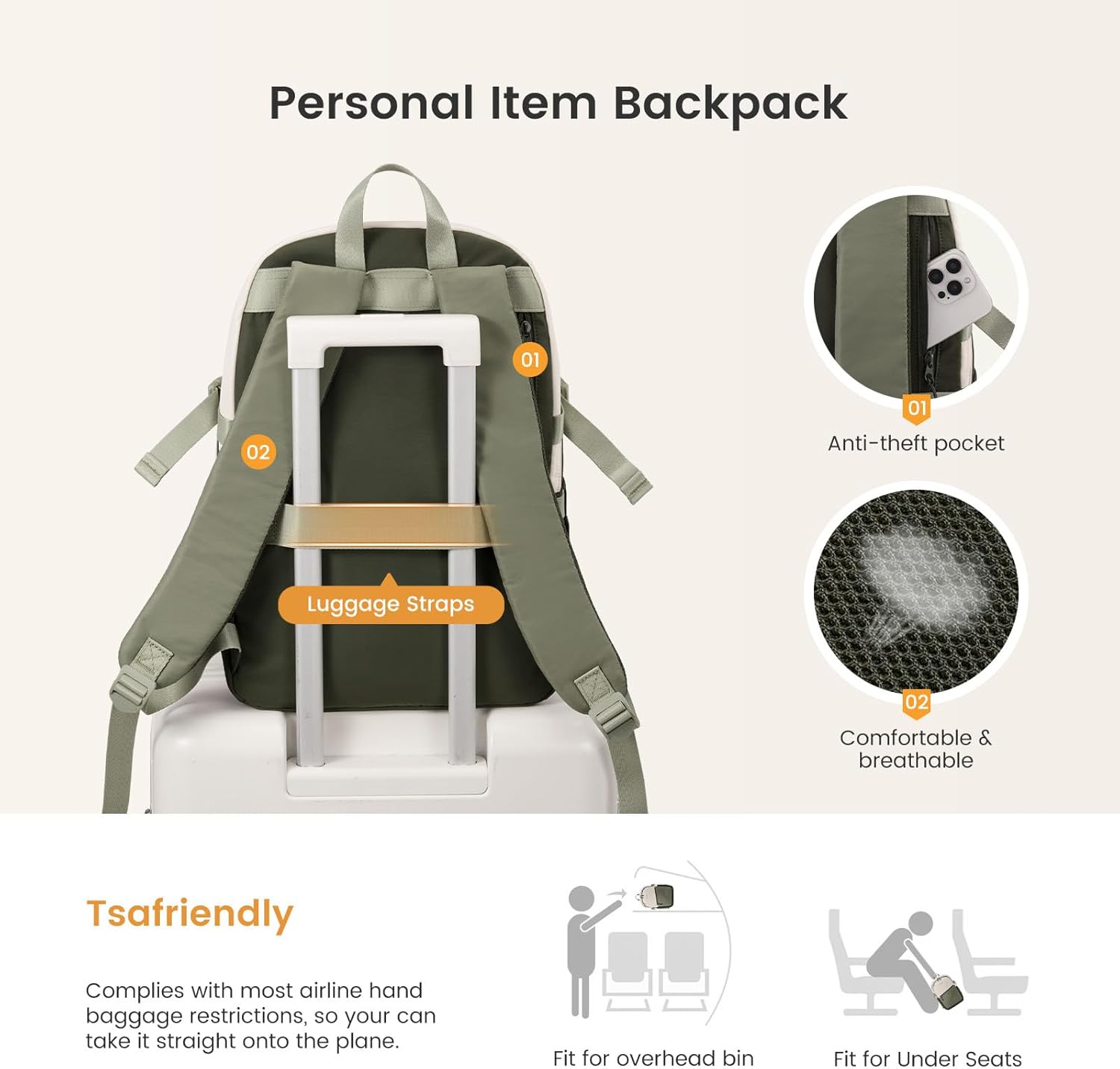 【Lightweight & Comfortable】: At just 1.25 lbs, this Daily Commuter Backpack lightens your load from the start. The adjustable, padded straps provide a breathable and customized fit for all-day comfort. The built-in luggage strap secures to your rolling suitcase for true hands-free travel through airports and stations.