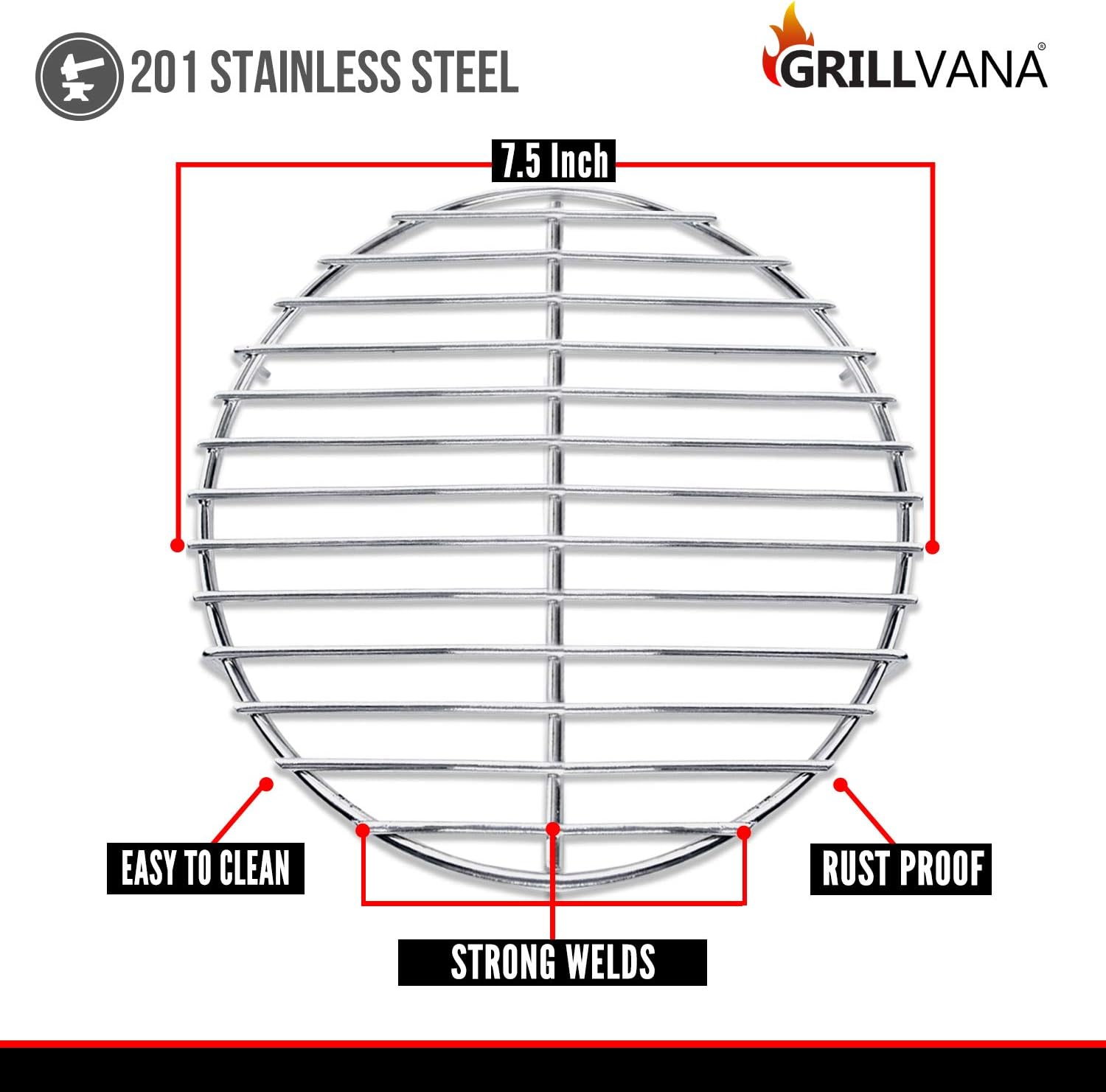 NO RUST, NO CORROSION, EASY CLEANING- Stainless steel just makes life easier. No rust, no corrosion of the grids, and easy cleaning. Take comfort in knowing that you will have no additional rust in your food, your grate will not disintegrate over time and will scrub clean with little effort. Fits a standard 7.5 inch chimney starter diameter. Chimney starter not included.