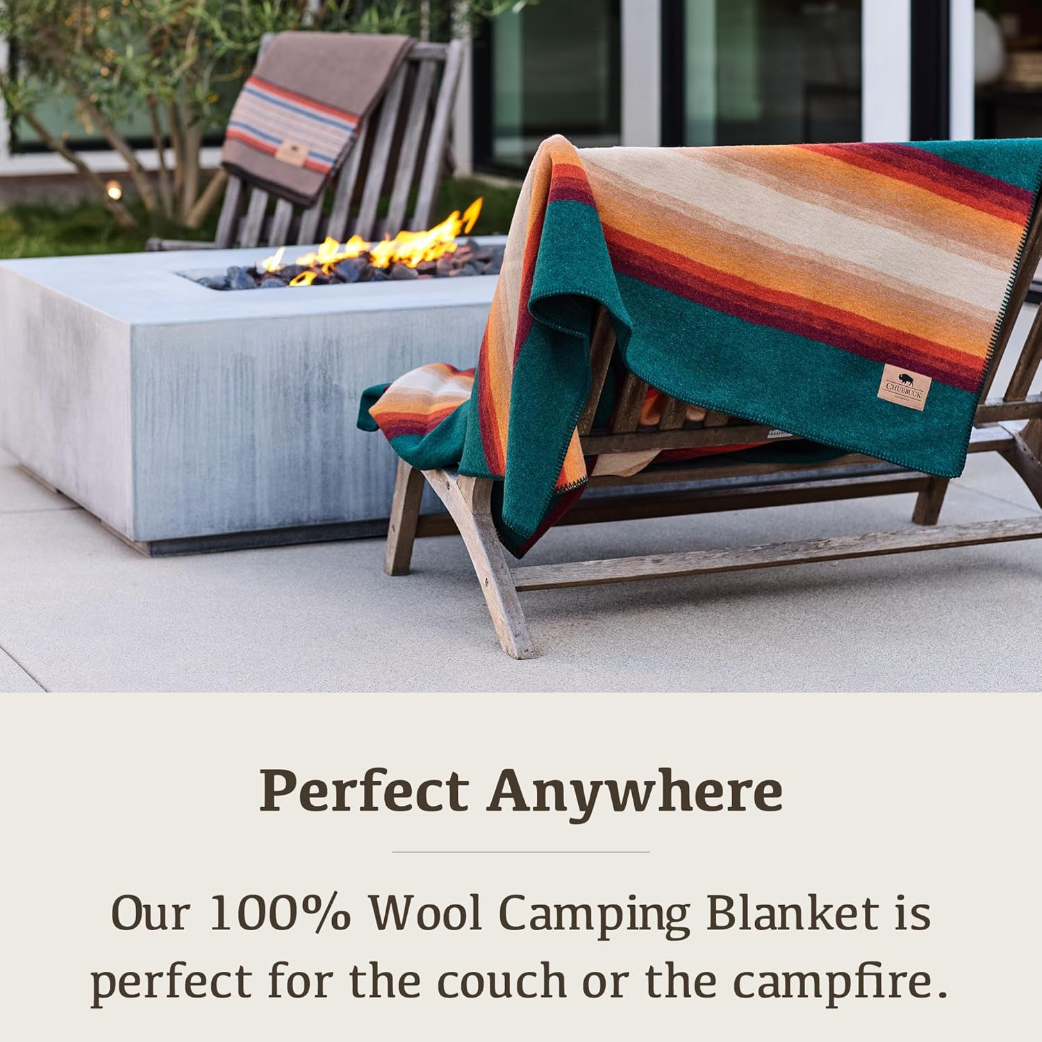 CRUELTY-FREE CAMPING WOOL BLANKET: Our soft wool blanket is carefully crafted from ethically sourced wool, making it a cruelty-free choice you can feel good about. Designed to use as camping blankets for cold weather or warm outdoor blanket, it offers soft comfort and lasting warmth wherever your adventures take you.