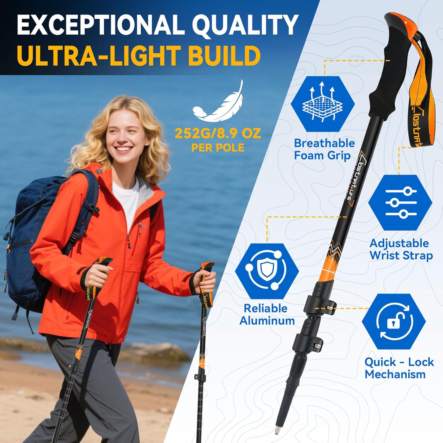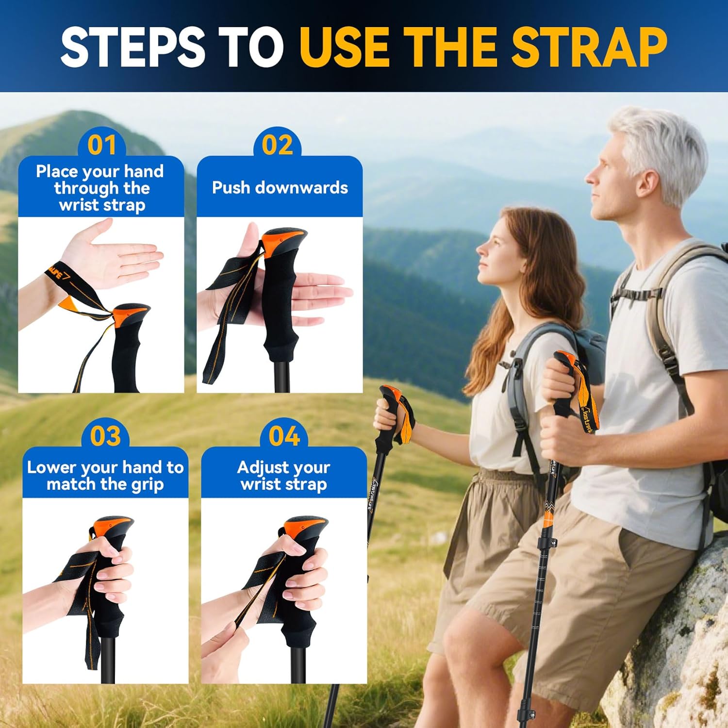 ERGONOMIC FIT FOR ALL-DAY COMFORT: The soft, non-slip EVA foam grip eases hand tiredness during long hikes even when sweating while the adjustable wrist strap shifts weight from your hands to your forearms, ideal for seniors or those with less wrist strength. The lightweight build and balanced weight distribution let anyone hold them comfortably for hours, so you’ll feel fresher after a day on the trail