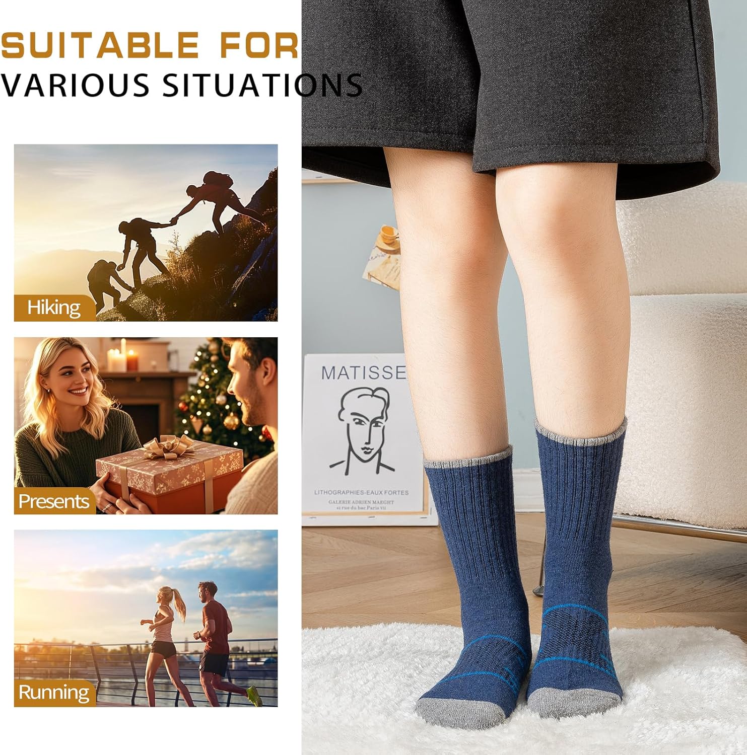 You can choose these womens winter wool hiking socks as presents for your loved ones on important days.Our wool socks can be widely used in a variety of occasions, you can wear it at home or outdoors, you can also sleep in spring, autumn, winter or any cold weather area, it can protect you from colds.