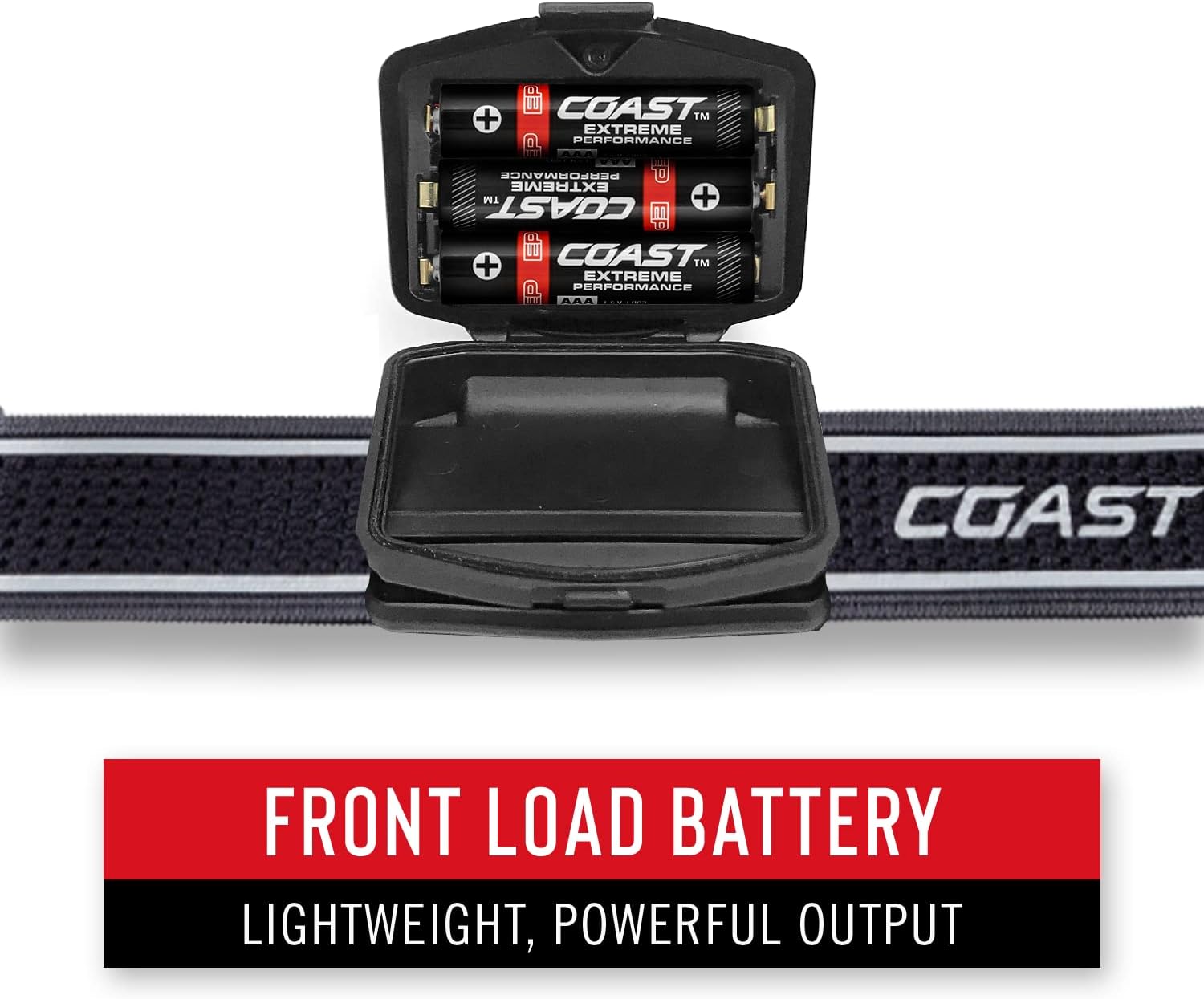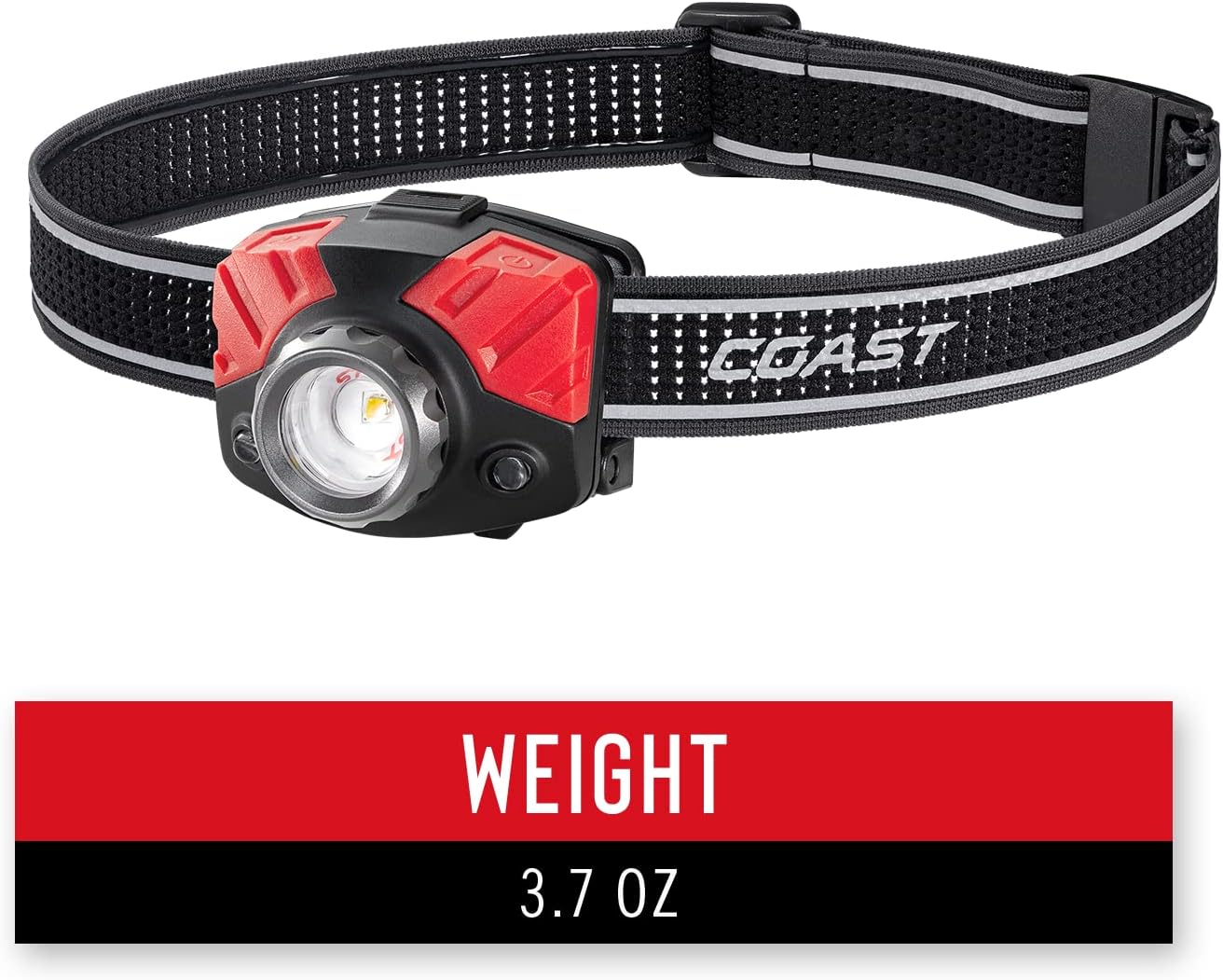 TWIST FOCUS OPTIC: The simple TWIST FOCUS system goes from an Ultra View Flood Beam to BULLS-EYE Spot Beam. DUAL COLOR: The FL75 includes white and red LED light options. The red LED light preserve night vision. SPECS: Light Output: 700lumen (high), 66 lumens (low). Beam Distance: 143 meters (high), 56 meters (low). Runtime: 2.5 hours (high), 16 hours (low). Reflective strap, hinged beam adjustment and hard hat compatibility included. TOUGH & RELIABLE:IP54 rated design for water resistance and durable body for 1-meter drop protection. Backed by the COAST Lifetime Warranty against defects in materials and workmanship. INCLUDED ACCESSORIES:3 x standard AAA alkaline batteries and hard hat clip