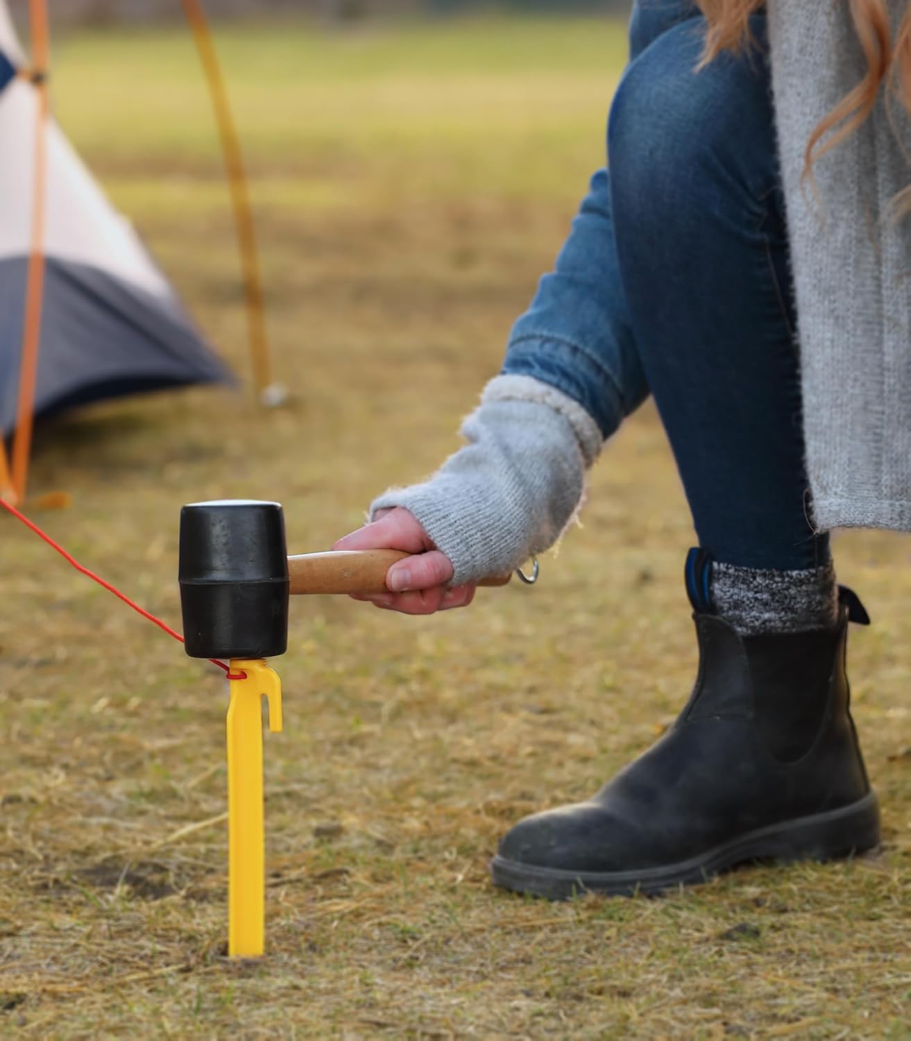 Noise-dampening rubber head: Minimizes sound while driving pegs into the ground, making it a suitable tool for late-night or early-morning campsite setup.