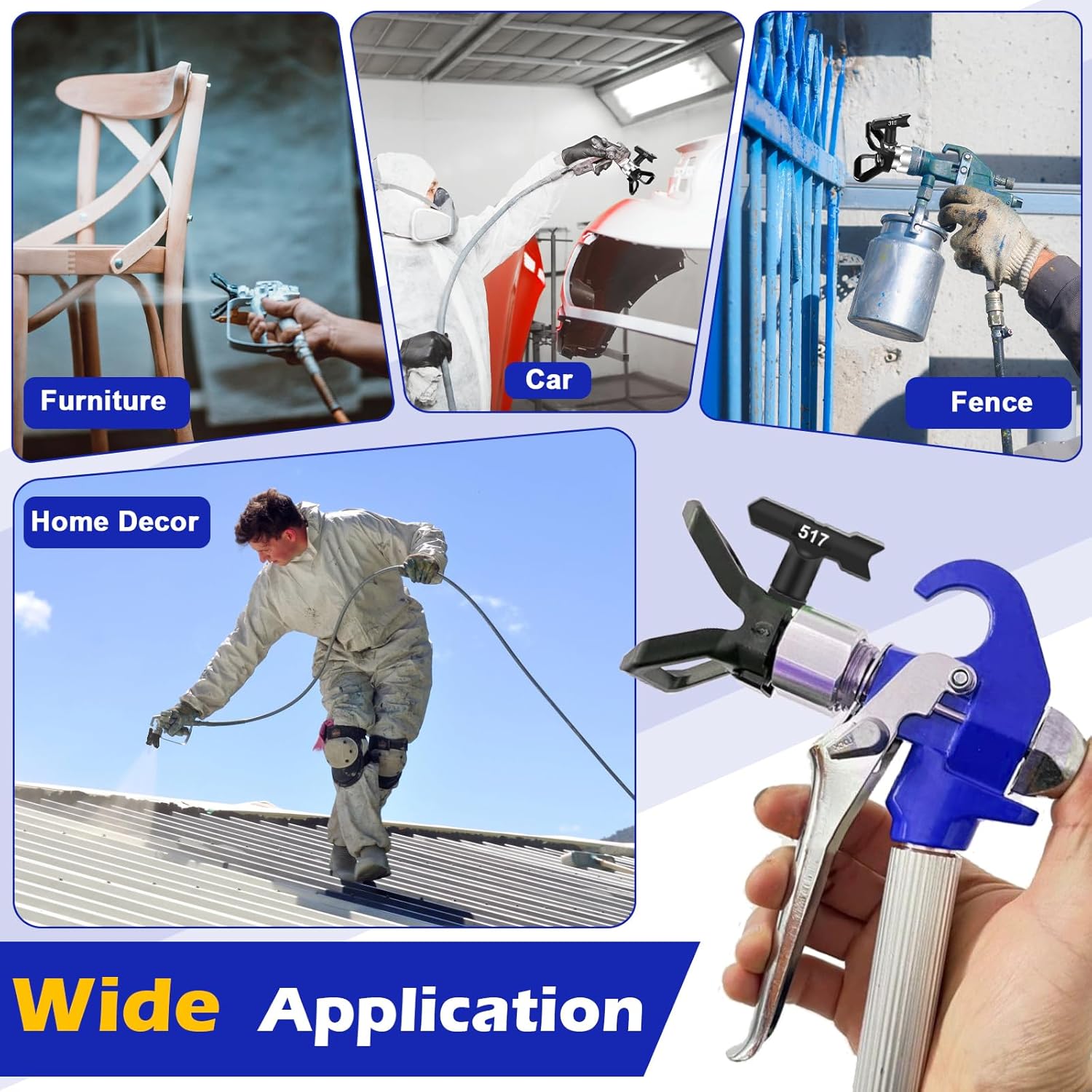 Wide Applications: Ideal for a range of projects including paint jobs, furniture refinishing, fence coating, and industrial applications. Compatible with most airless paint sprayer, making it a versatile tool set for various painting tasks.