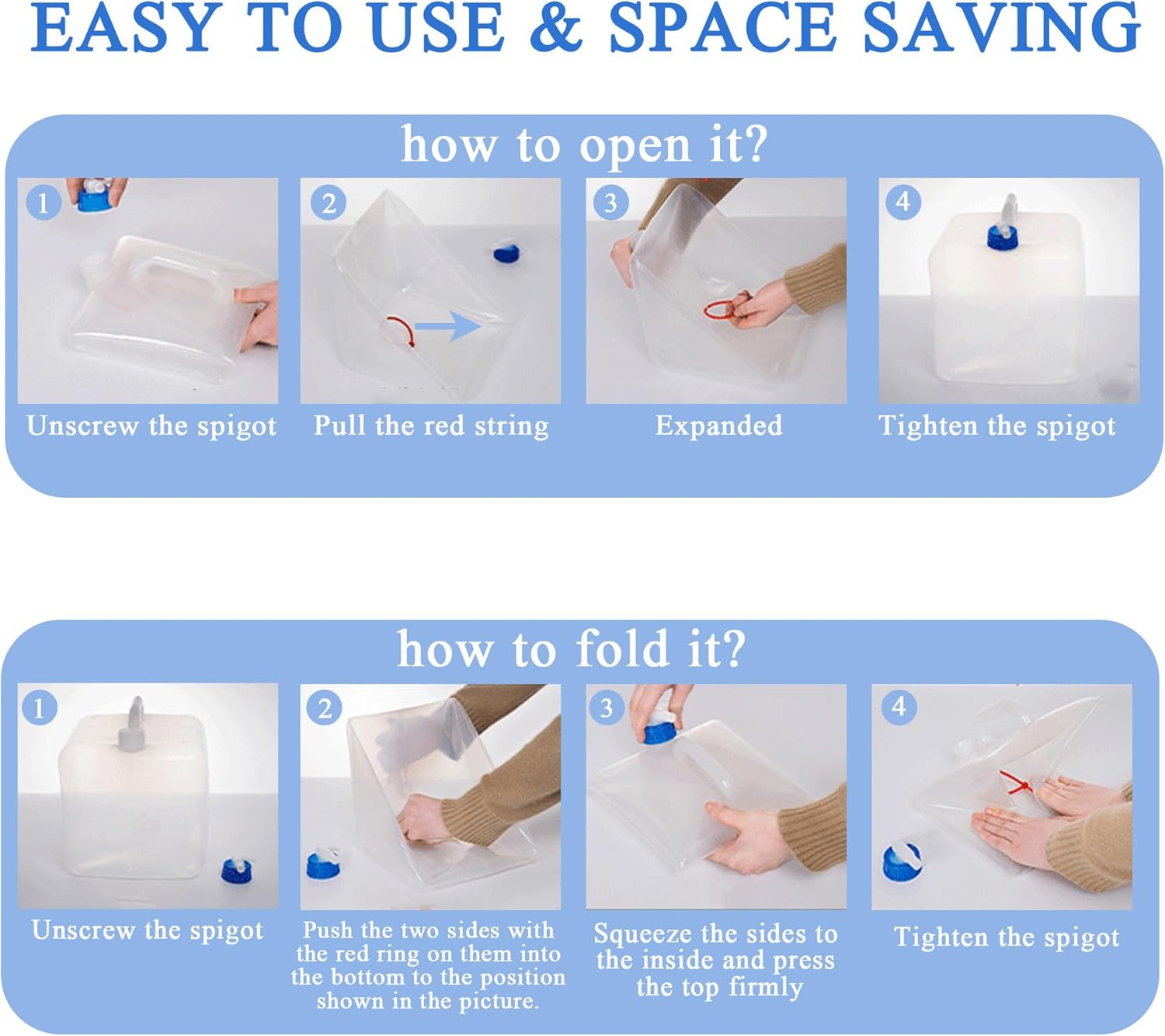 【Convenient Faucet & Leakproof Seal】: Our Collapsible Water Container comes with a one-button switch food-grade faucet for precise control of water flow, with a double-layer silicone seal, pouring water without leakage, meeting the needs of outdoor drinking water, washing, pet feeding and other multi-scenarios.