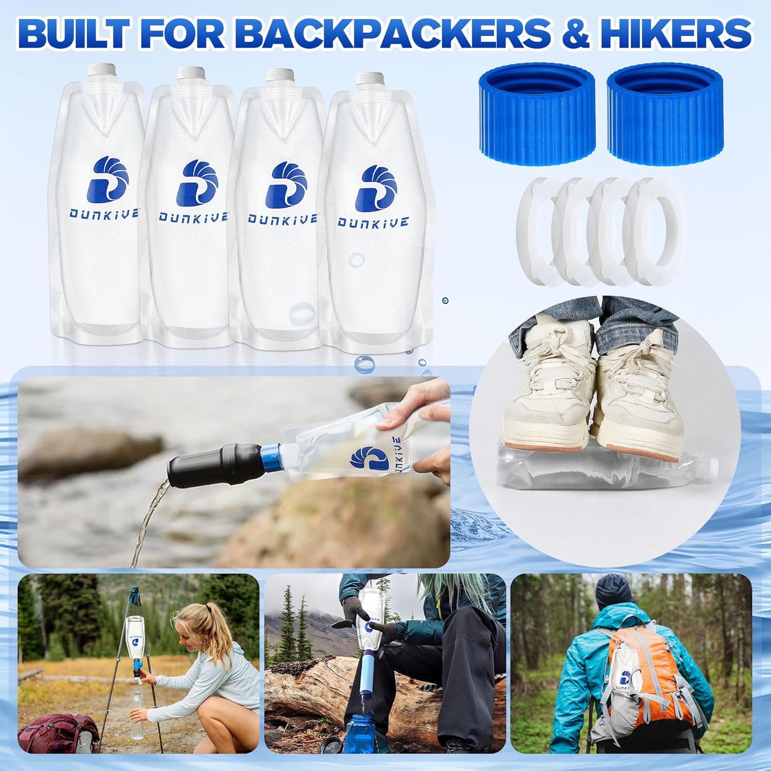 [Designed for Hikers & Backpackers] Unlike heavy hard bottles or large filter pumps, this lightweight, compact kit is perfect for minimalist hikers, backpackers, and outdoor enthusiasts. Whether for short trips or multi day adventures, the quick connect couplings, spare gaskets, and collapsible bags ensure you’re ready for any water source you encounter