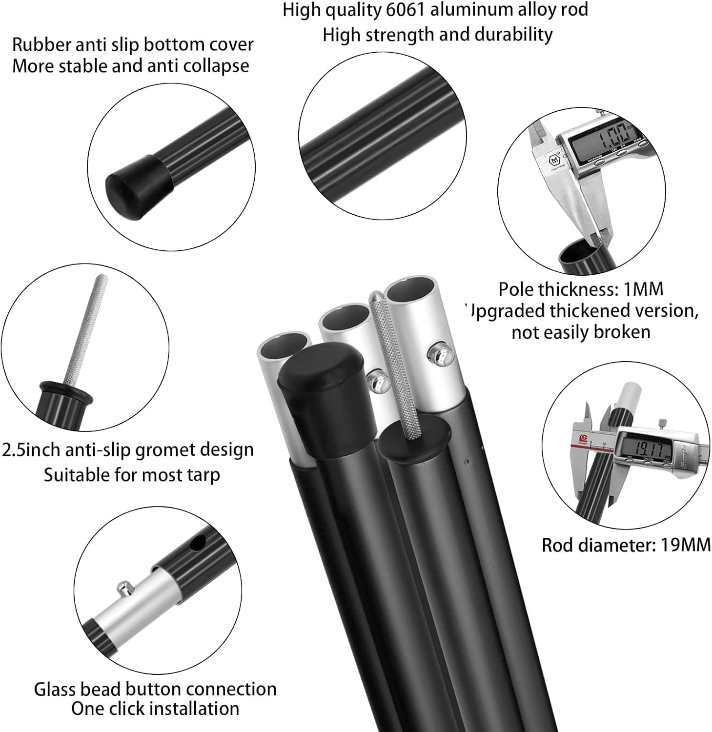Anti-Slip Plastic Cap Strongly Supports Your Camp:The updated plastic cap at the bottom of the tarp poles can reduce slipping while eliminating punctures when used to support the tarp,tents, sun shelter.