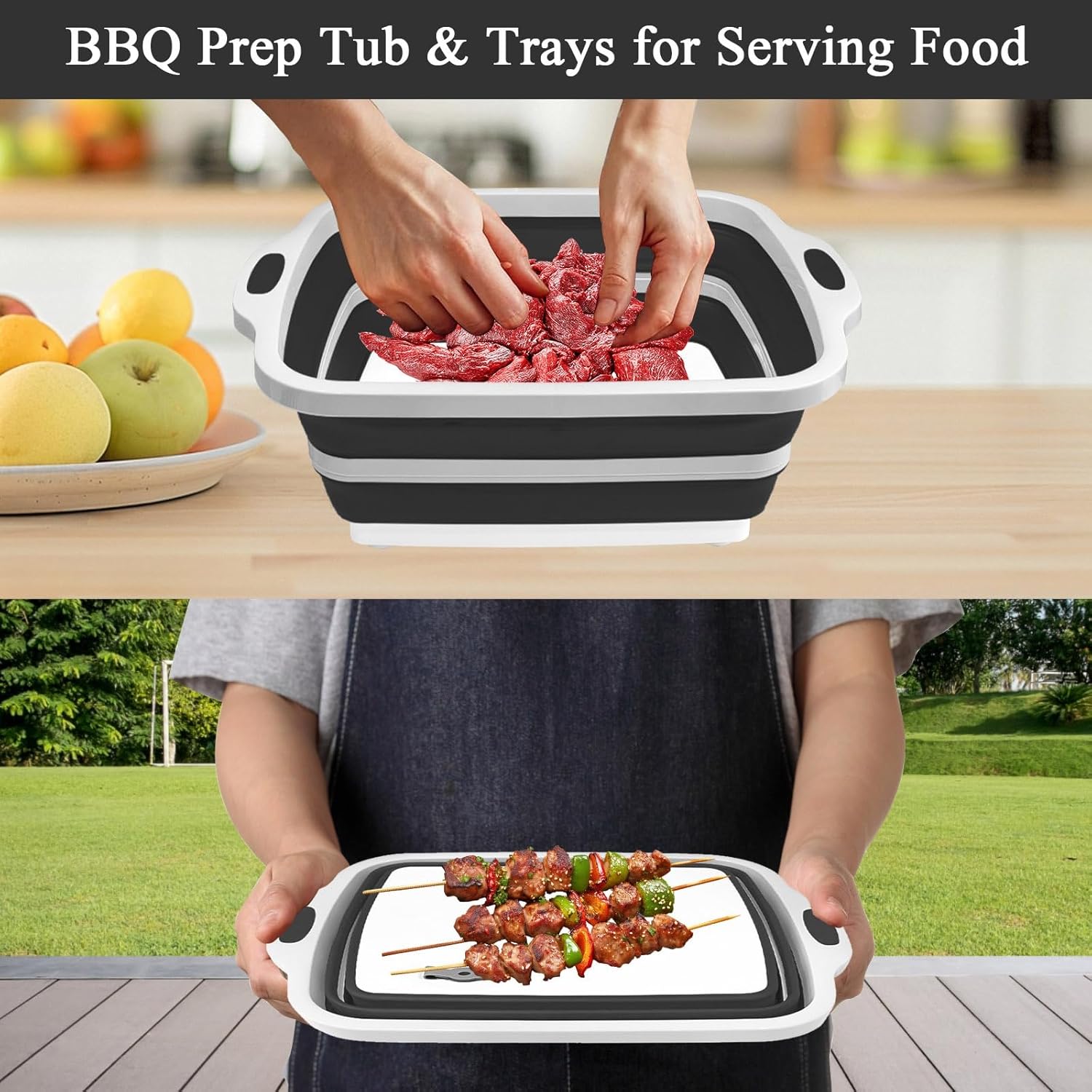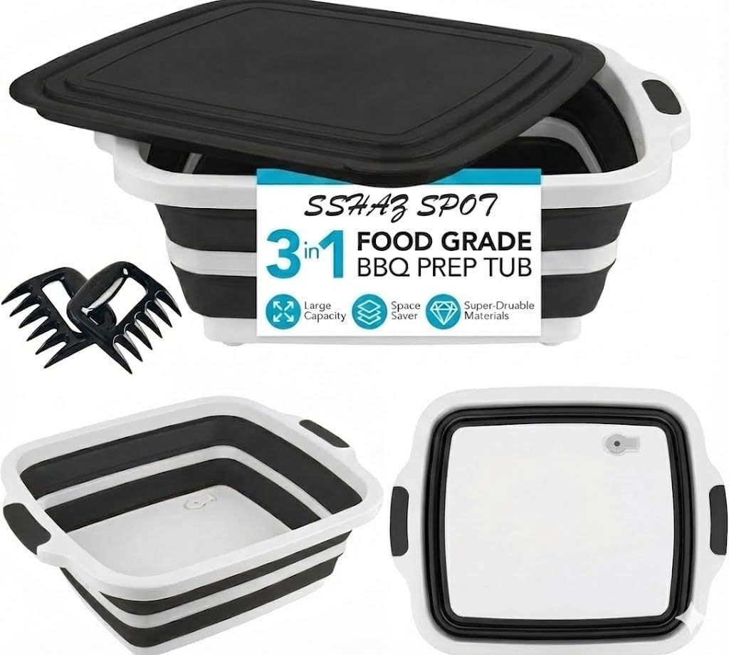 ๐-๐ข๐ง-๐ ๐๐ฎ๐ฅ๐ญ๐ข-๐๐ฎ๐ซ๐ฉ๐จ๐ฌ๐ ๐๐๐ ๐๐ซ๐๐ฉ ๐๐ฎ๐:This collapsible bbq prep tub works as a cutting board, marinating container, and food storage tub in one. Ideal for outdoor grilling, camping, or kitchen use a foldable, food-safe, bpa-free bbq prep station for meat, vegetables, and seafood.