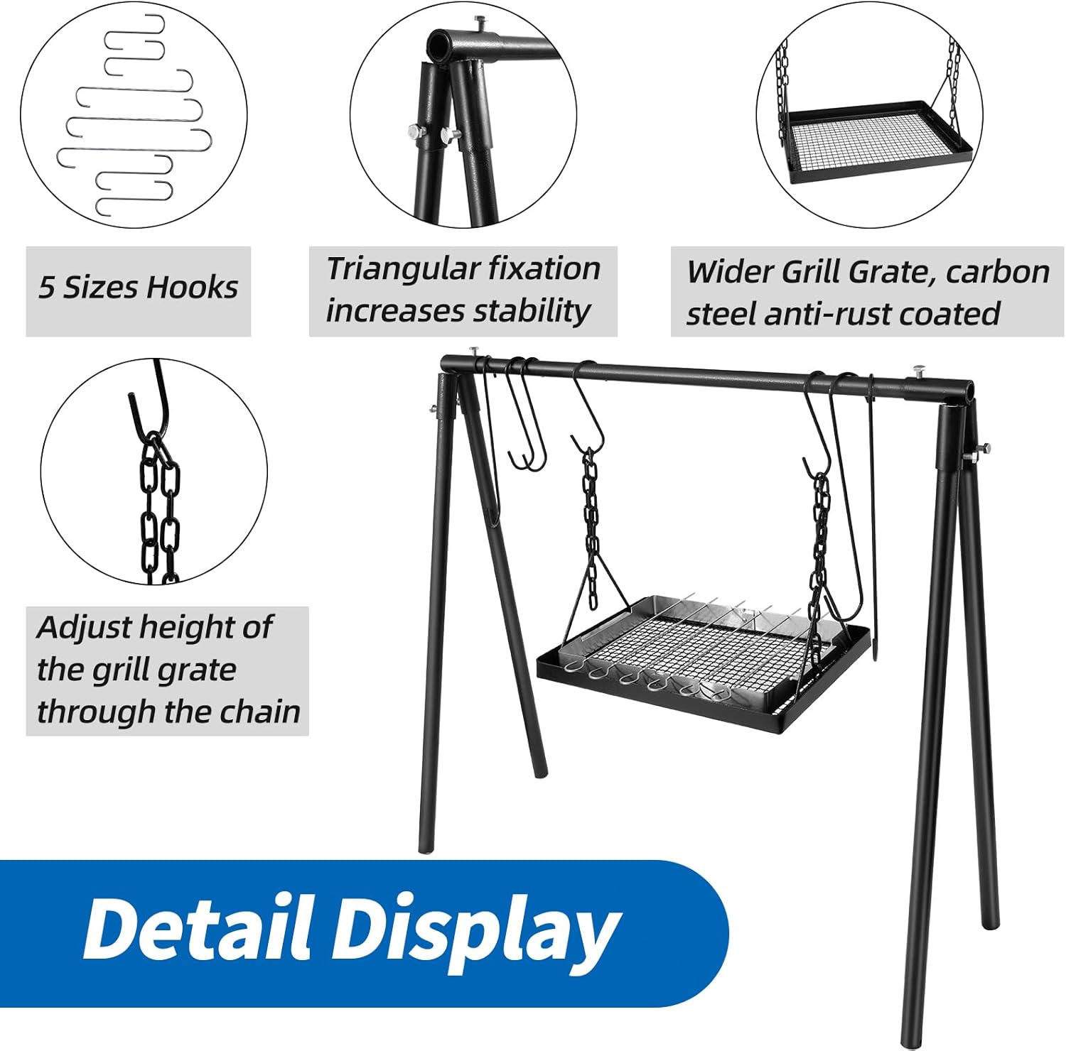 π₯Ύ Campfire Swing Cooking Grill Stand, Collapsible Campfire Cooking Rack with Adjustable Iron Grill Grate and Hooks for Outdoor BBQ Picnic Cookware Party Dutch Oven β Review, Key Features & Current Price