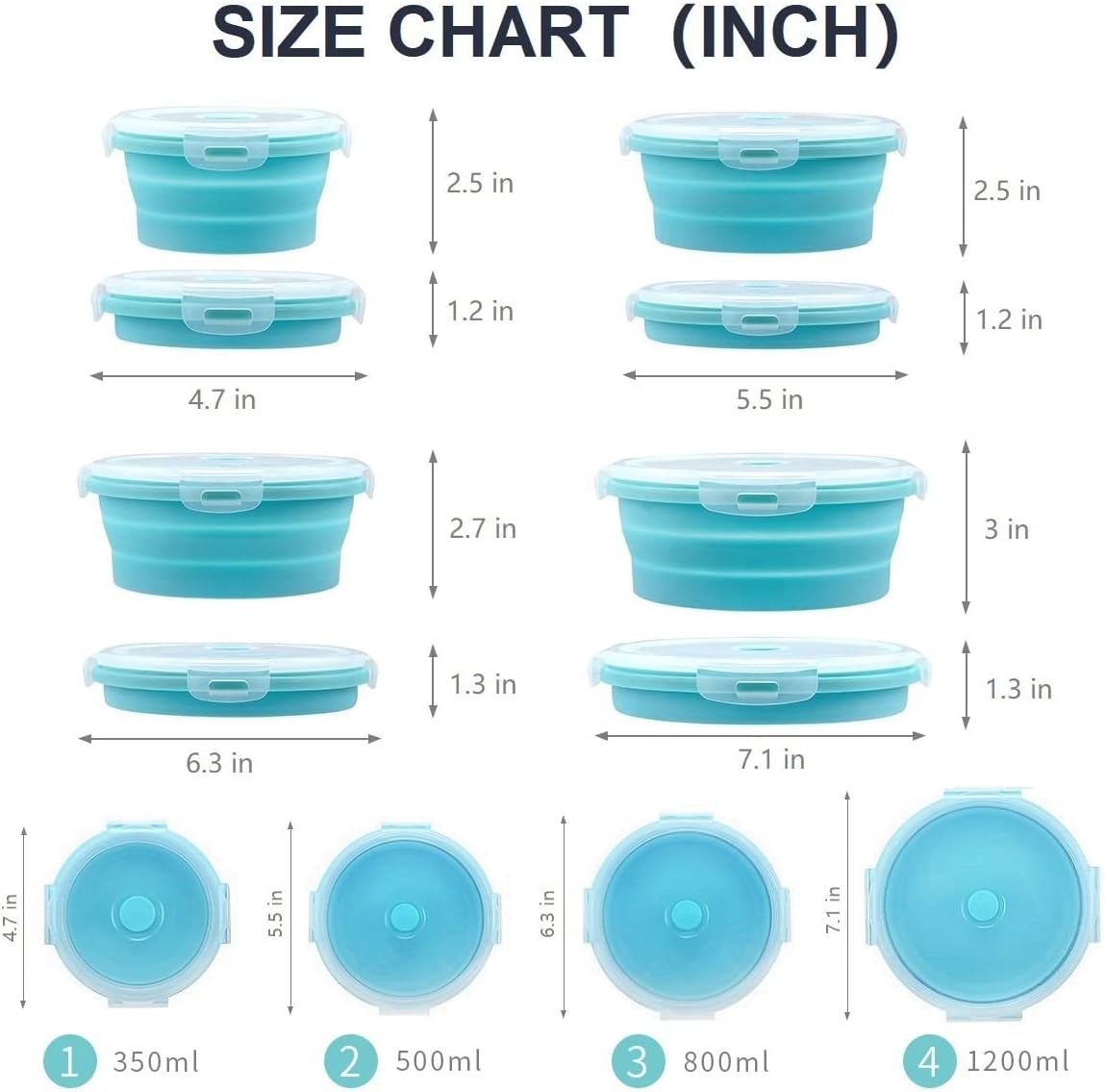 【VALUE PACK】Our collapsible silicone bowl sets, compressible, stackable, reusable. These silicone containers work well as far as regards sealing, and they collapse easily. A nice selection of sizes which are a lot easier to store than the glass style, each size: small (350 ml), medium (500 ml), large (800 ml) and extra large (1200 ml). These silicone containers can be used as rv accessories for travel trailers, are the camper rv must haves 2025.