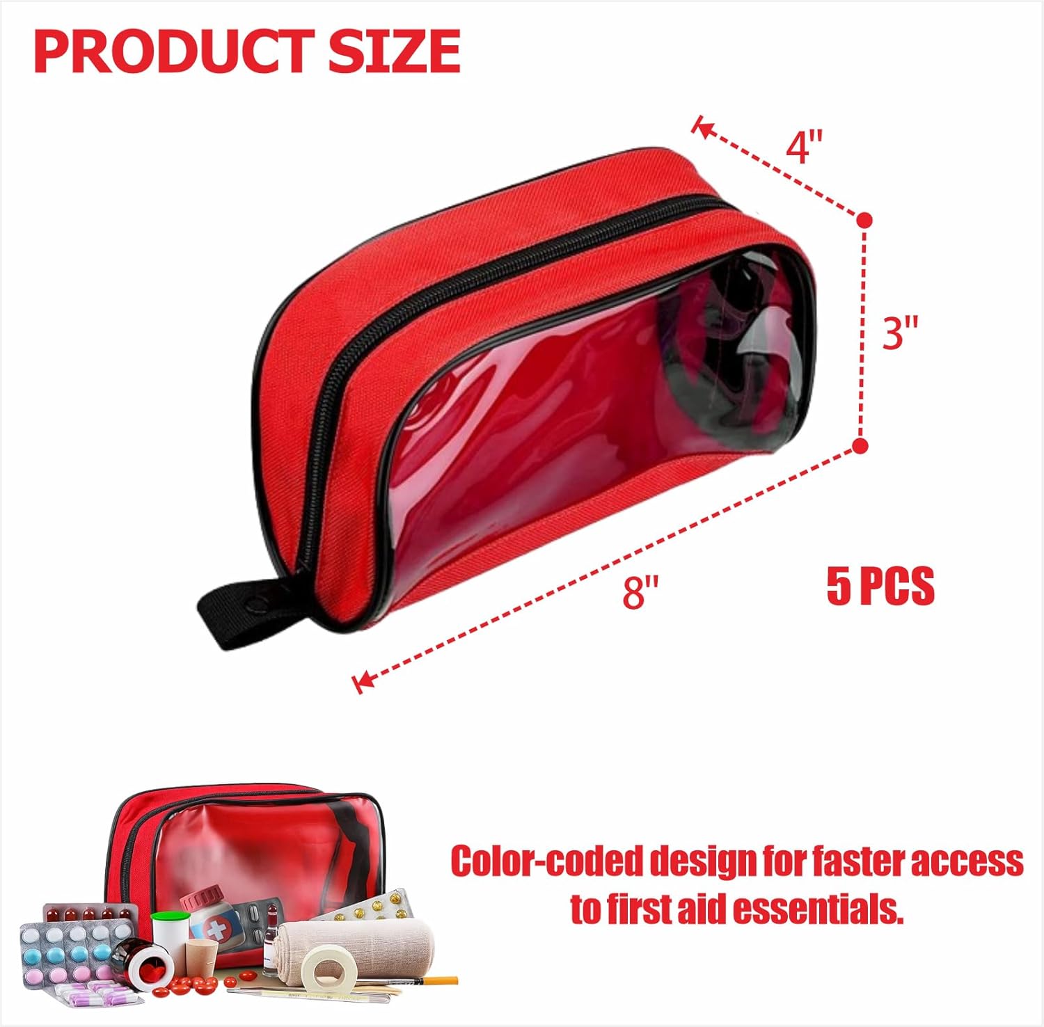 Color-Coded Design. Helps sort and organize first aid essentials by type or priority for faster access in emergencies.