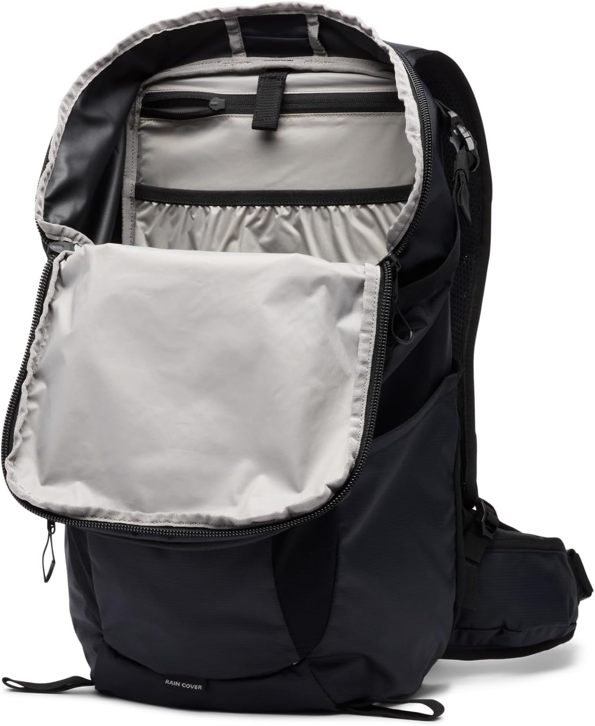 HANDY FEATURES: Includes a 3-liter hydration reservoir sleeve, stowable rain cover, and an adjustable sternum strap with a rescue whistle.