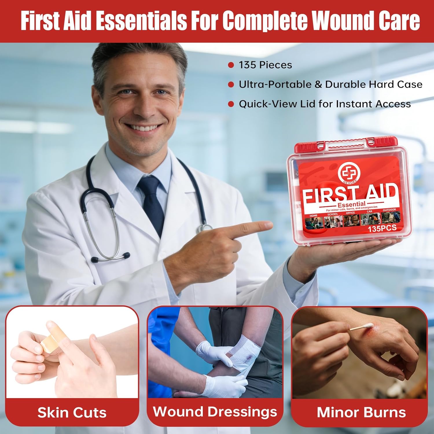 Durable & Organized Carry Case – Store your supplies securely in a rugged plastic case with easy-slide latches for quick access. Perfect as a home first aid kit, car emergency kit, or workplace safety essential – everything stays protected and neatly organized.