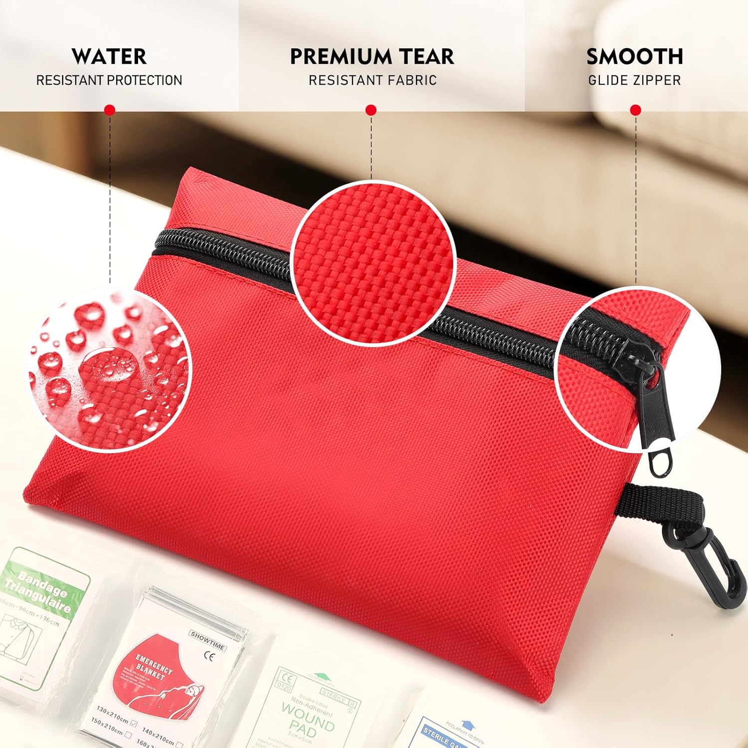 VERSATILE MULTI-SCENE APPLICATION: ideal as both a car first aid kit for road trips and first aid kit for home use, with additional outdoor-ready features perfect for camping, hiking and travel emergencies