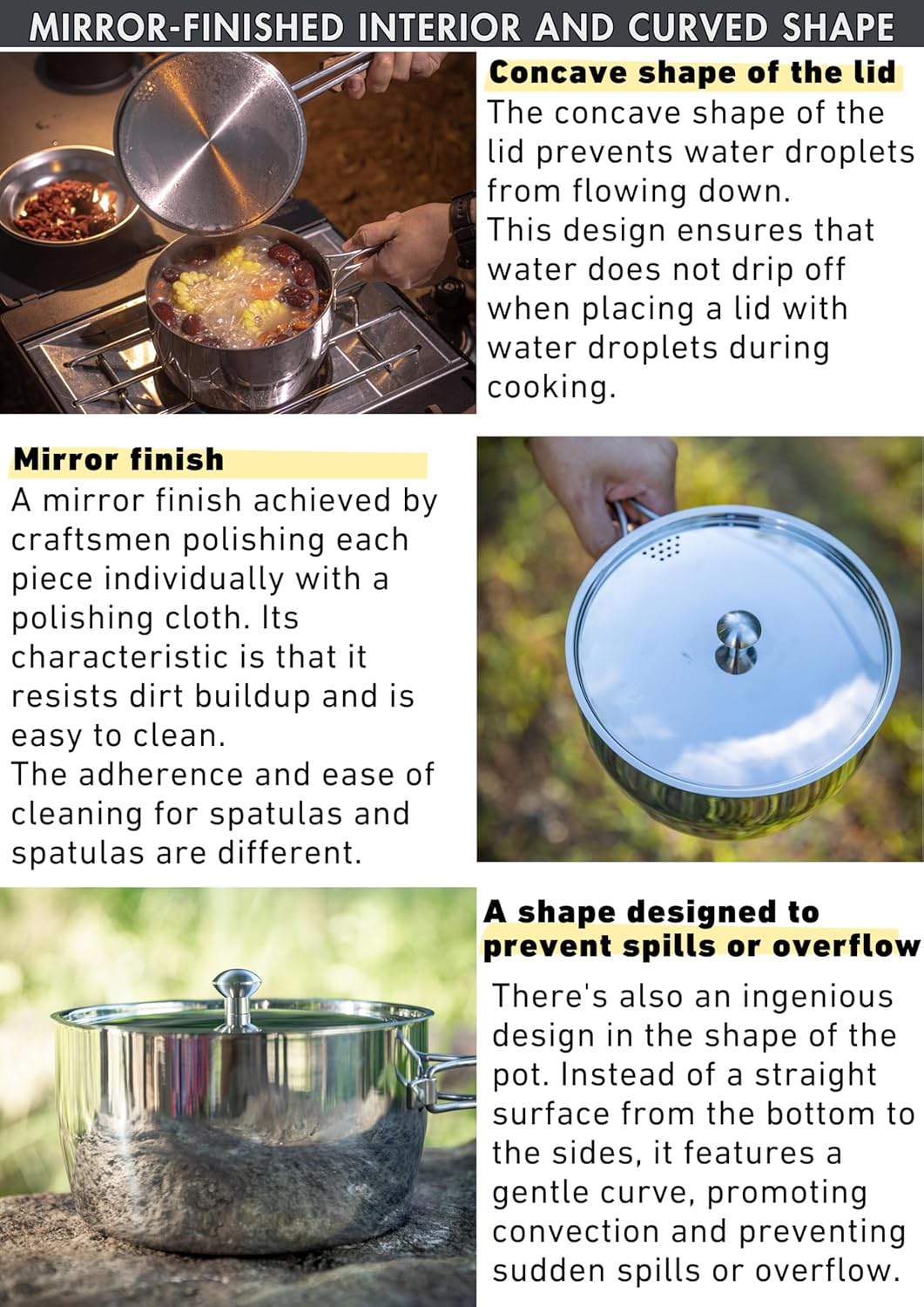 【A shape designed to prevent spills or overflow】There’s also an ingenious design in the shape of the pot. Instead of a straight surface from the bottom to the sides, it features a gentle curve, promoting convection and preventing sudden spills or overflow.